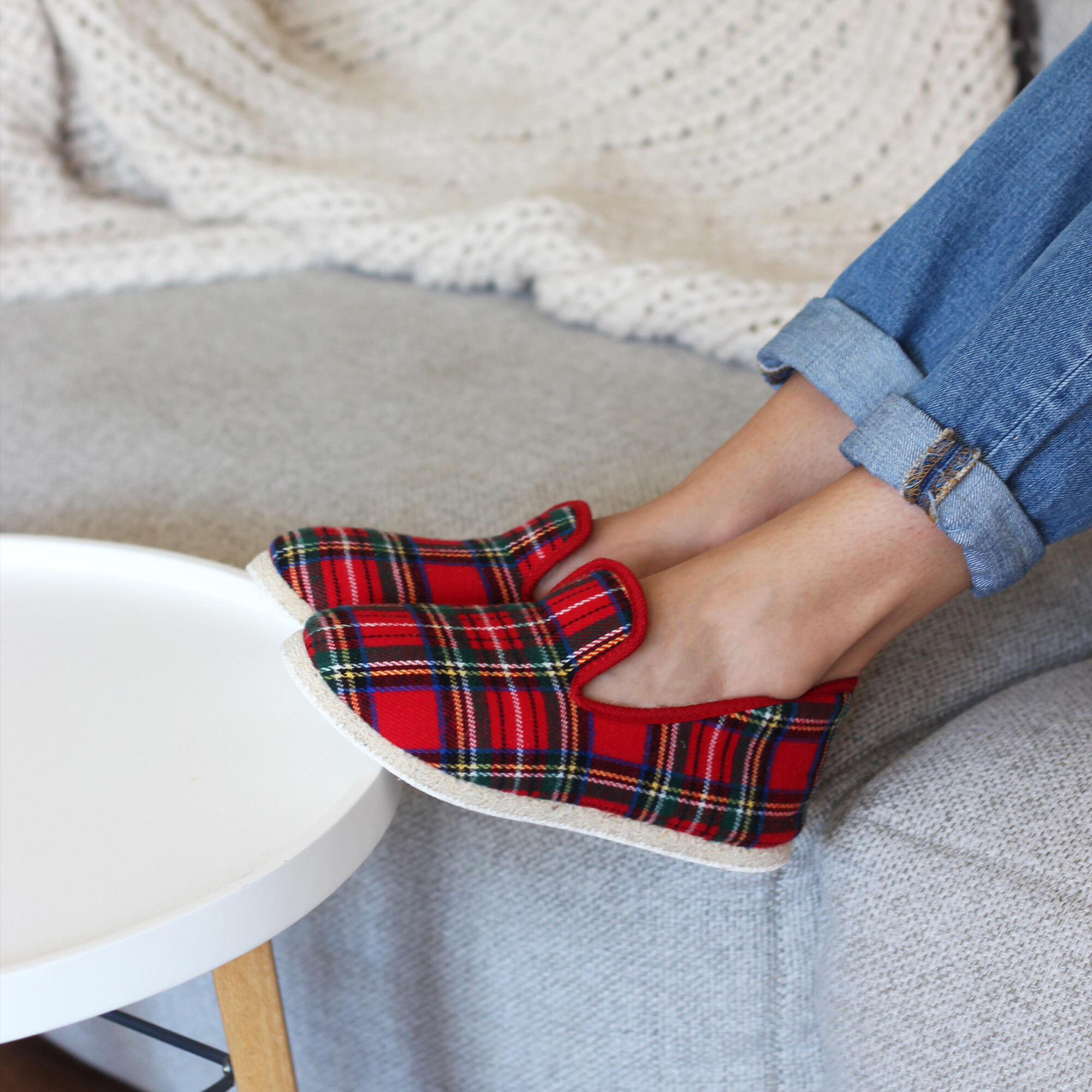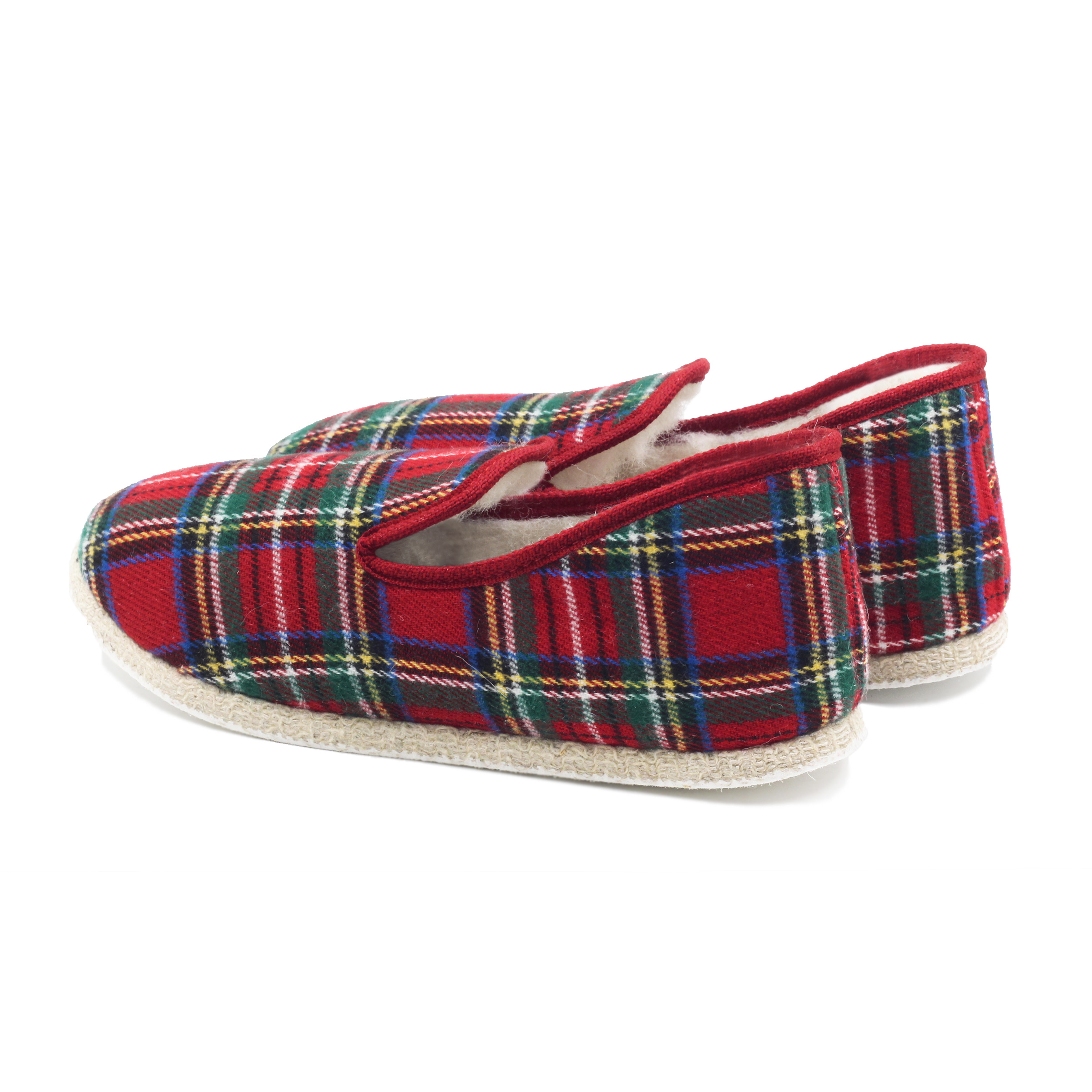Charentaises en laine et coton écossais rouge, fabriquées en France à La Rochefoucauld, en Charente. Aussi appelées pantoufles charentaises ou chaussons charentais, ces charentaises perpétuent une tradition ancestrale française apparue au XVIIe siècle. Doublure 100 % laine naturelle, tige coton. Semelle extérieure en feutre de laine contrecollé. Confectionnées selon la méthode traditionnelle du cousu retourné dans un atelier artisanal partenaire à La Rochefoucauld, berceau historique du chausson. Laine naturelle thermorégulatrice. Semelle feutre souple et silencieuse. Emballage certifié FSC et PEFC, réemployable et recyclable. Unisexe. Nos charentaises taillent petit, prenez la pointure supérieure. Si ce modèle vous serre, sachez que la laine prendra rapidement la forme de vos pieds. La laine se brosse à sec, évitez le lavage en machine. En cas de tache, épongez localement à l'eau tiède.