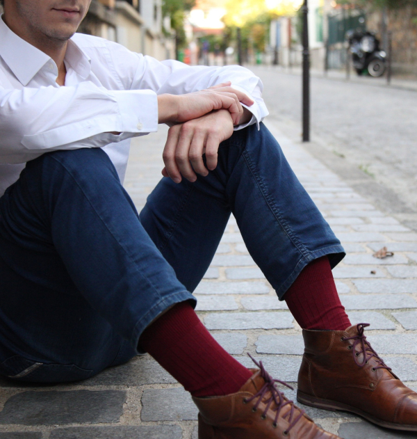 Chaussettes couleur bordeaux made in France en fil d'écosse