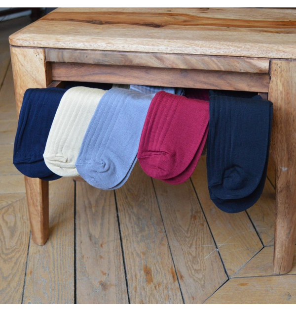 Chaussettes montantes mi-bas made in France pour hommes et femmes viennent d'une des dernières bonnetteries françaises, dans le Limousin. Le coton utilisé est sans substance nocive (OEKO TEX).