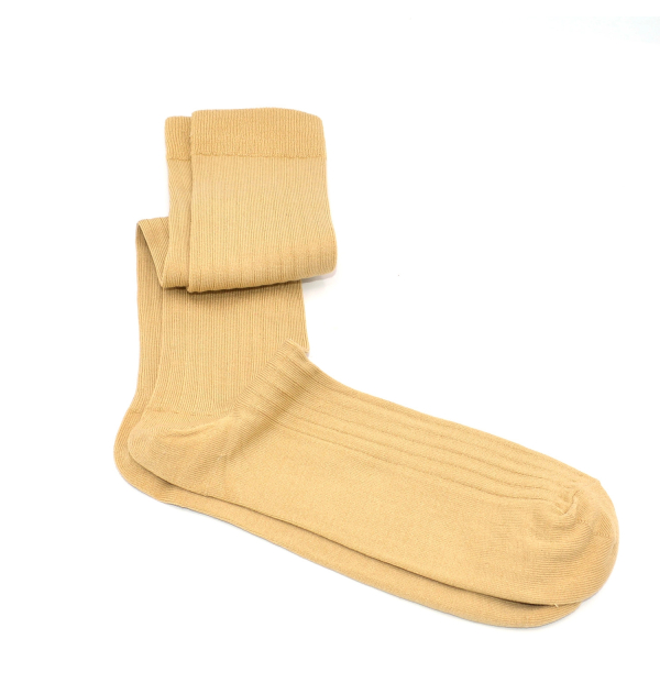 Chaussettes montantes mi-bas beiges made in France viennent d'une des dernières bonnetteries françaises, dans le Limousin. Le coton utilisé est sans substance nocive (OEKO TEX).
