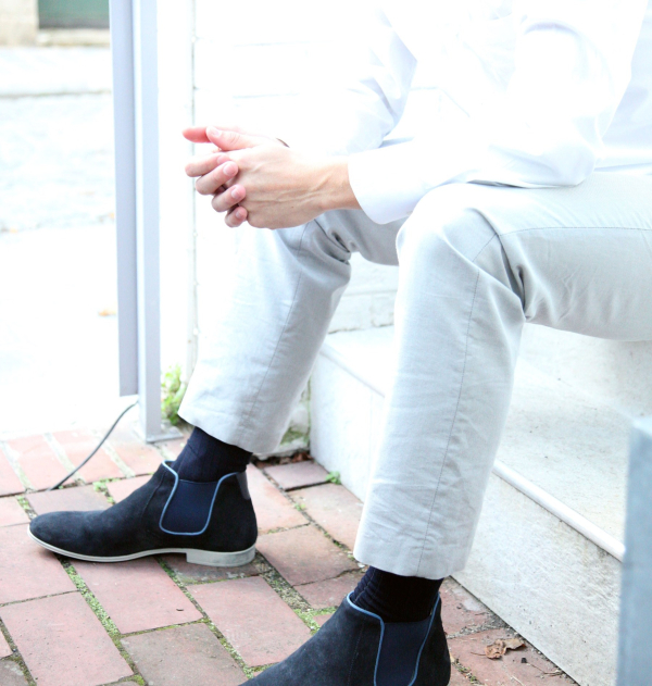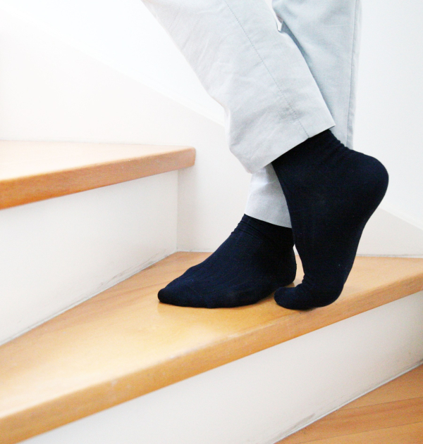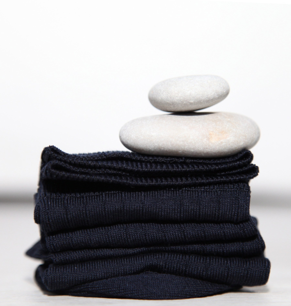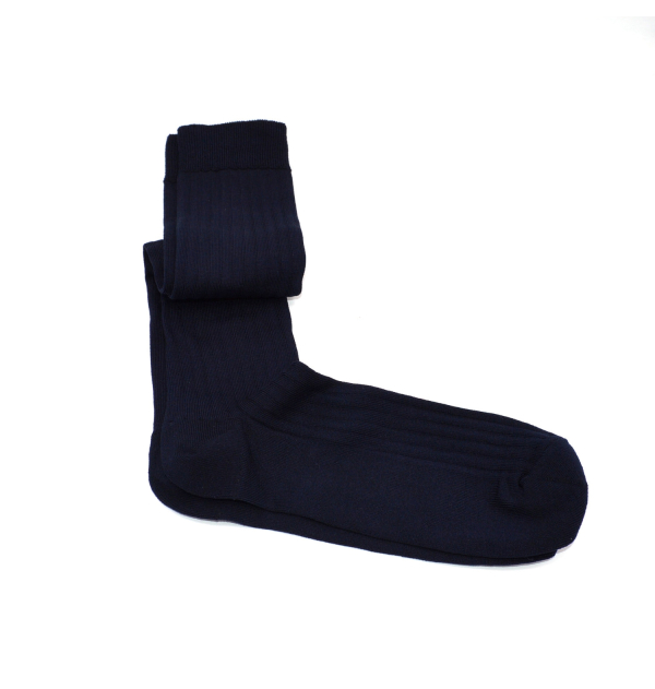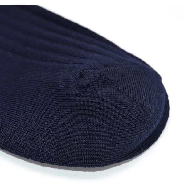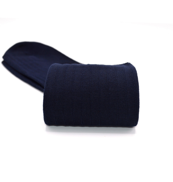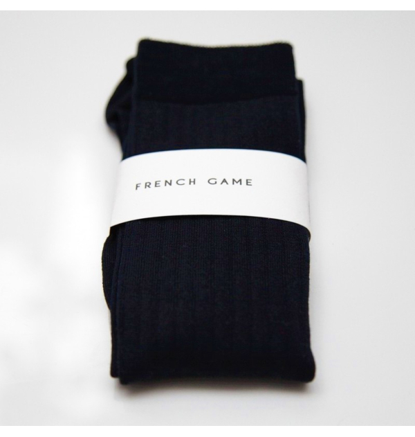 Ces chaussettes montantes mi-bas marines made in France viennent d'une des dernières bonnetteries françaises, dans le Limousin. Le coton utilisé est sans substance nocive (OEKO TEX).