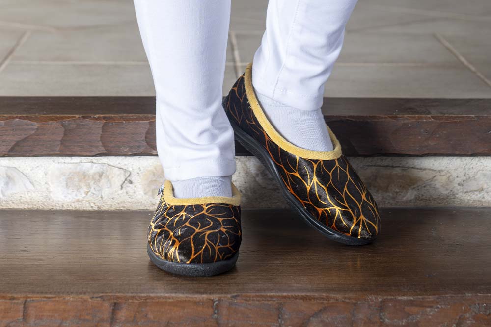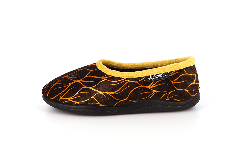 - Chausson d’intersaison idéal avec son dessin de feuilles orange et chaussons d’hiver avec sa forme enveloppante