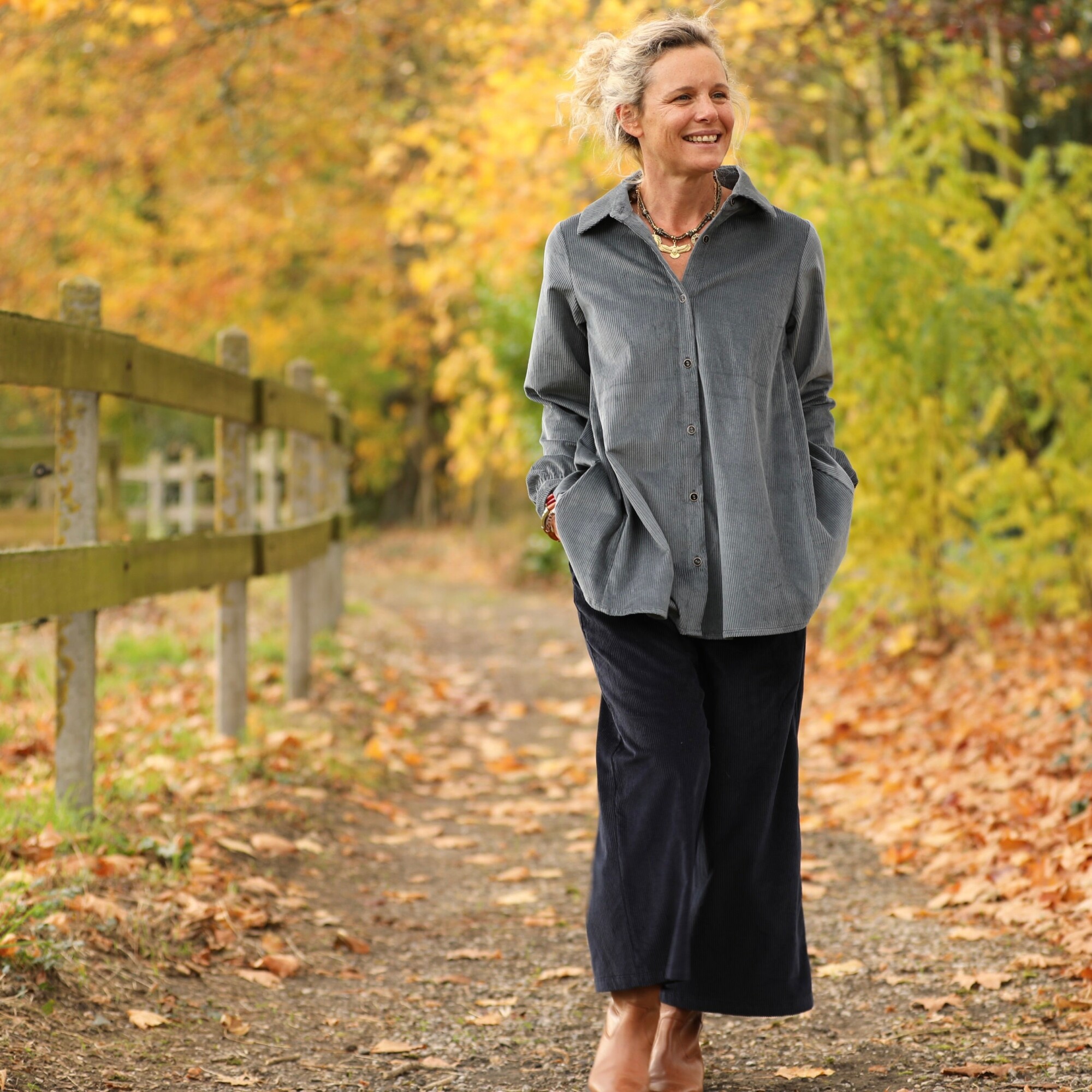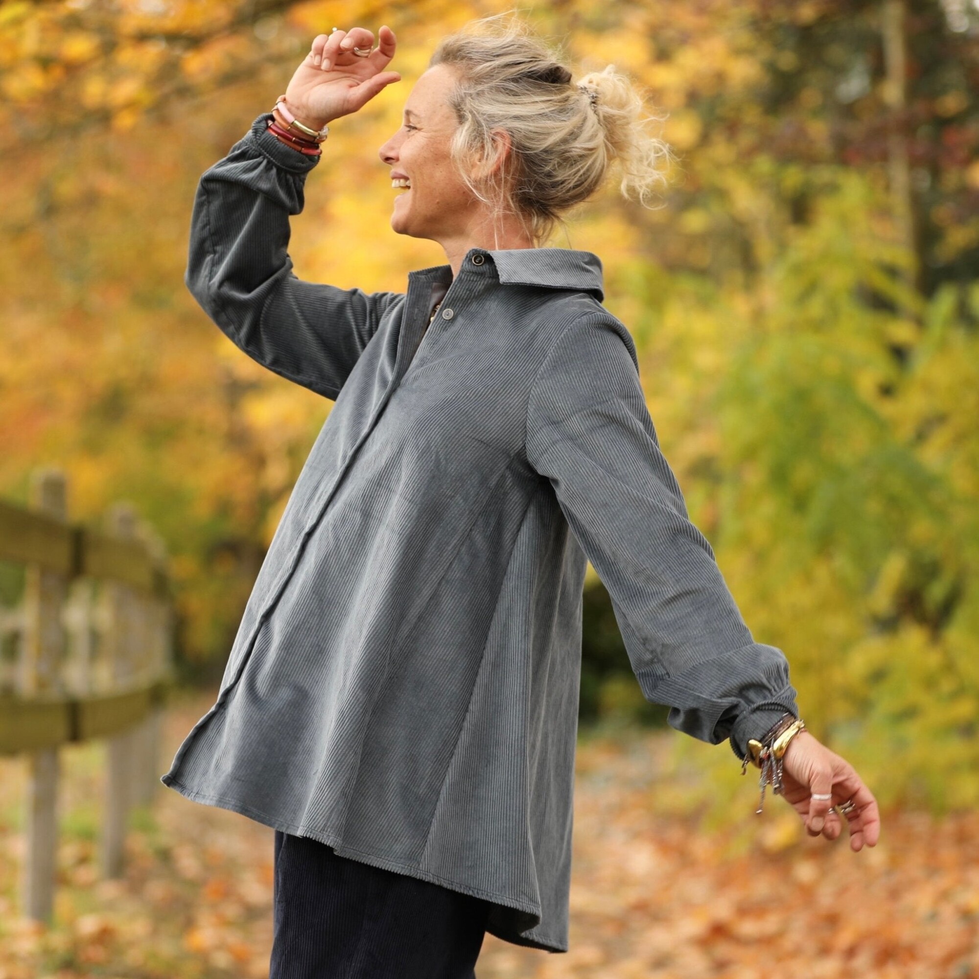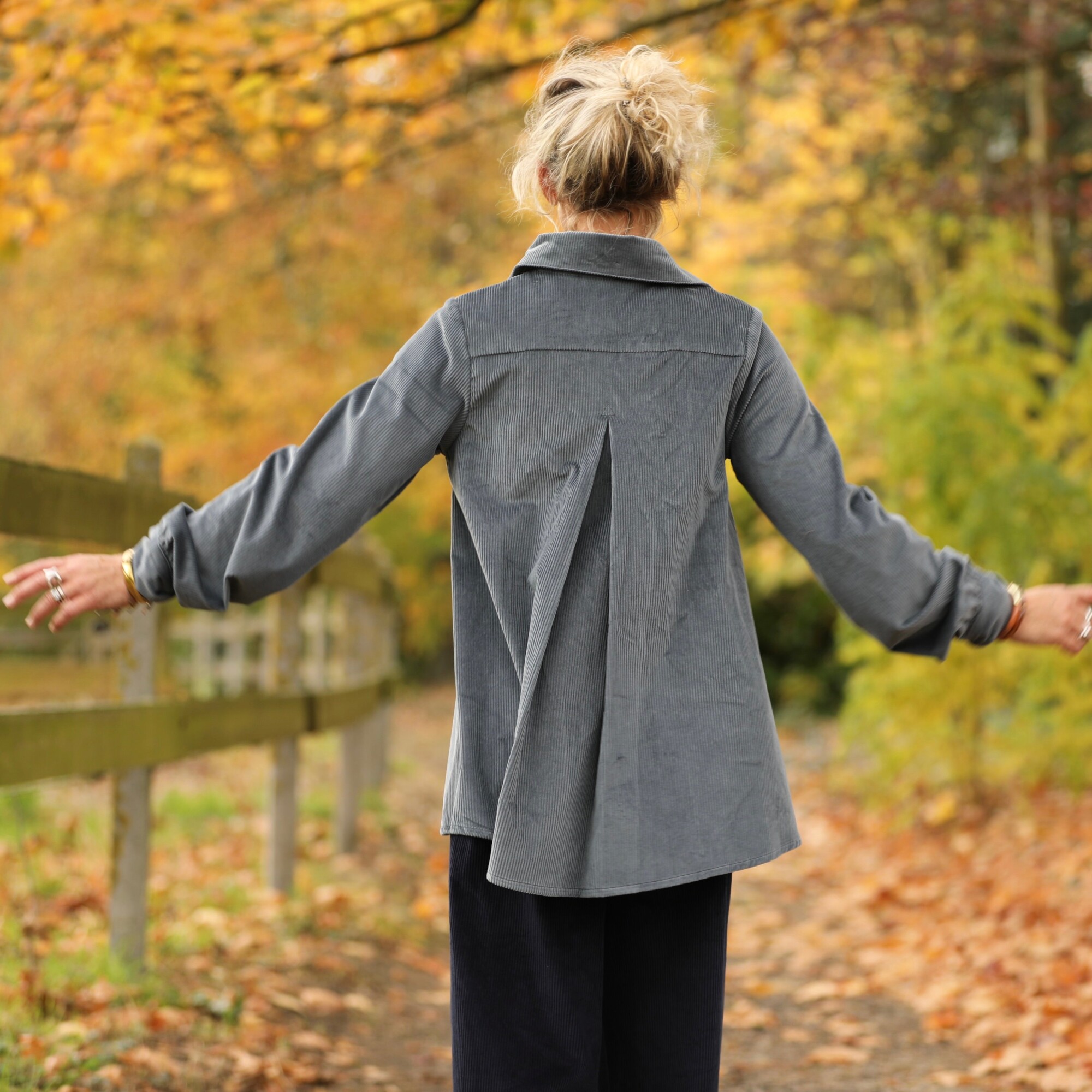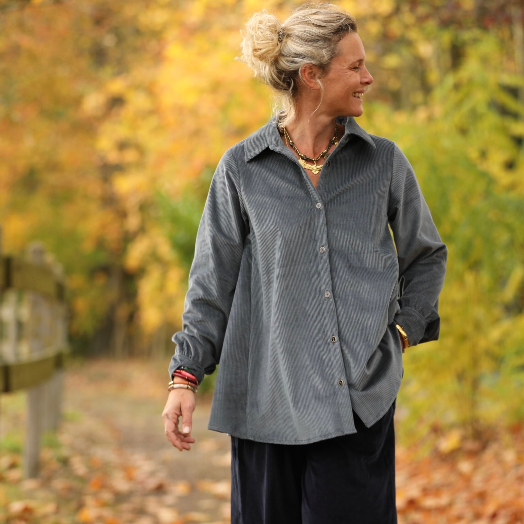 La chemise Caroline se pare ici d’un velours côtelé bleu grisé tout en subtilité. Douce, souple et légèrement texturée, elle offre une allure à la fois élégante et décontractée.