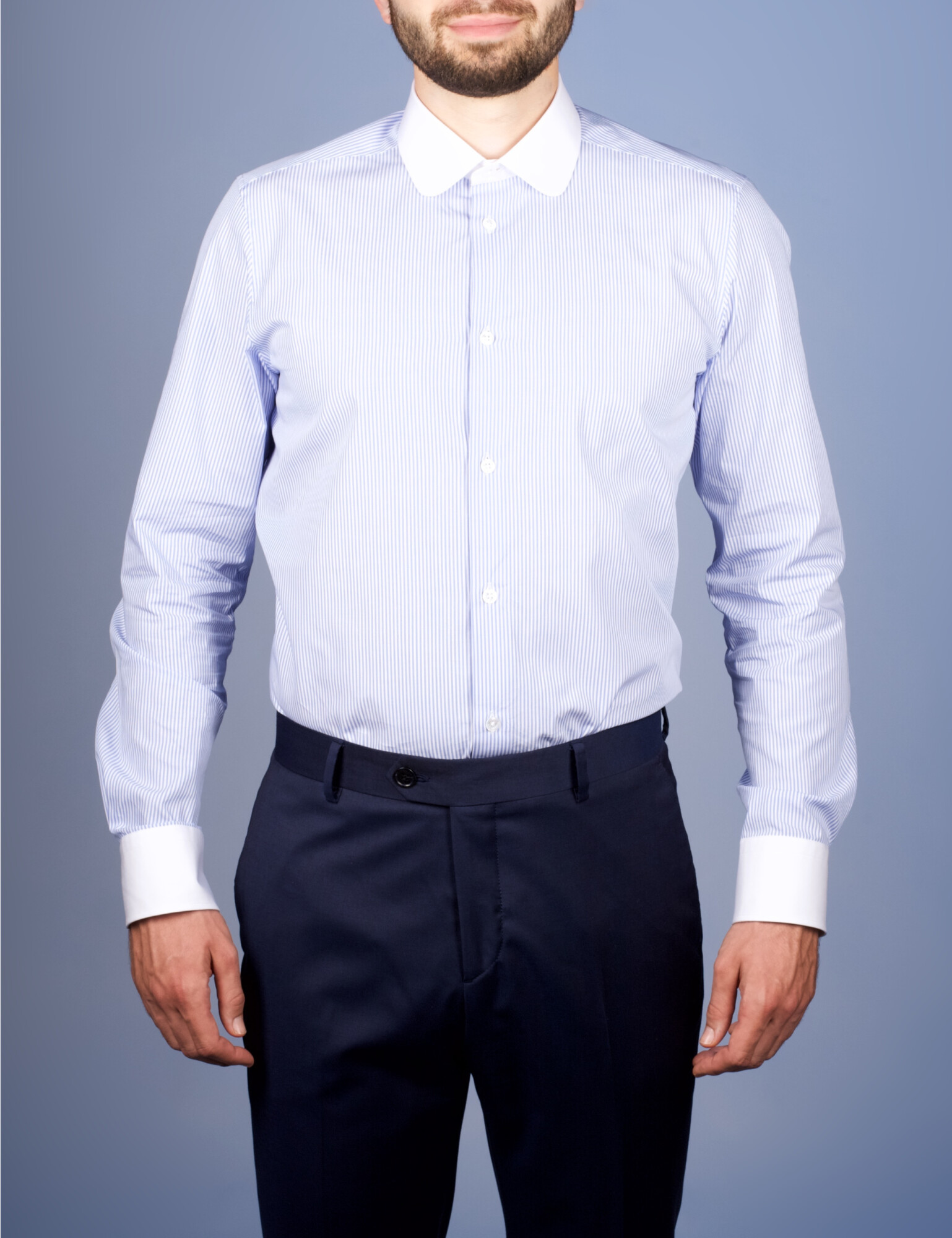 Notre chemise "Club" est un incontournable du gentleman moderne. Cette pièce au col rond distinctif ajoute une touche de raffinement classique, tandis que les boutons en nacre naturelle apportent une brillance subtile. Idéale pour les occasions formelles comme pour une tenue élégante au quotidien. Confectionnée en France, dans nos ateliers en Bourgogne, par nos Artisanes-Couturières. Découvrir le tissu ici : Nos Tissus *Supplément de 15 euros pour les grandes tailles à partir du 3XL.