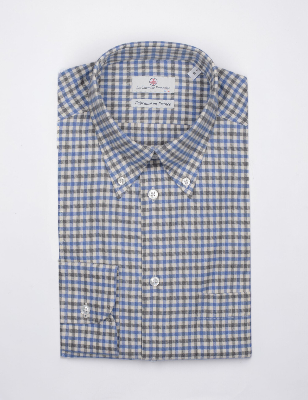 Chemise Flanelle à Carreaux Bleu/Gris - Col Boutonné