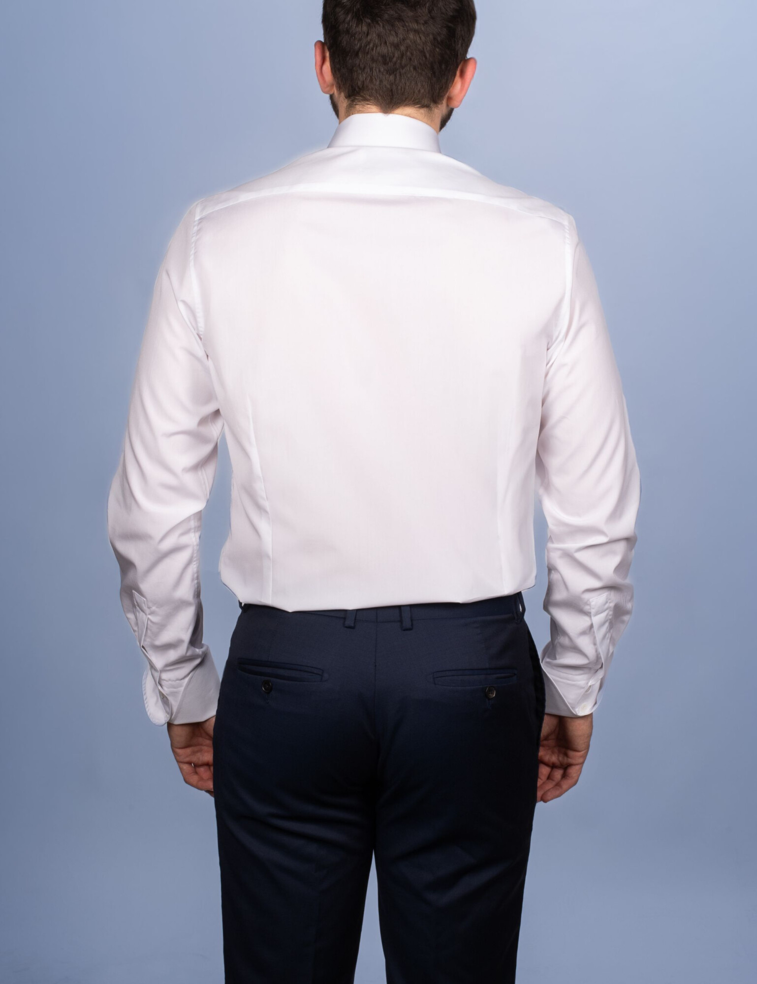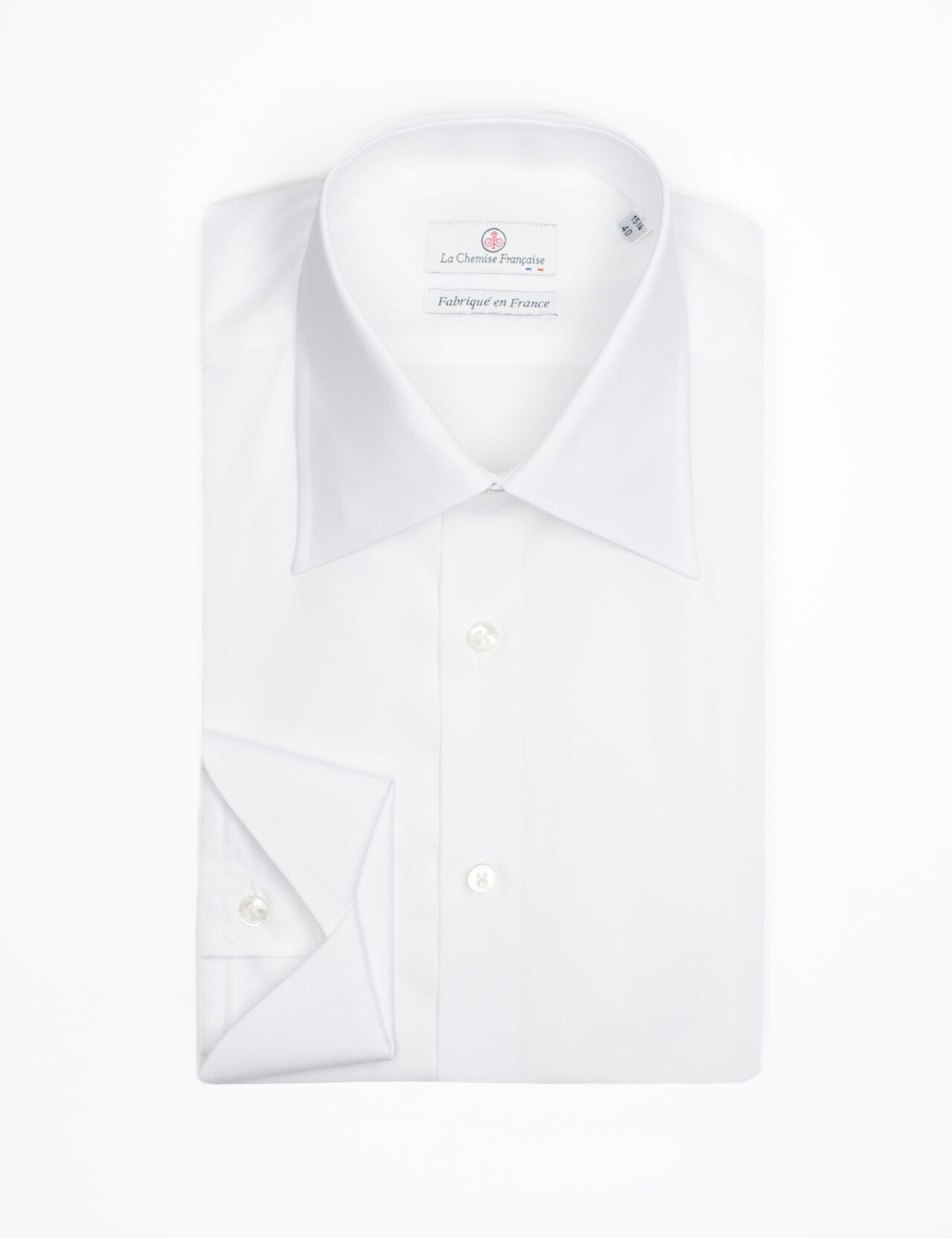 Symbole d’un renouveau sartorial, cette chemise en popeline 100 % coton double retors assume une présence maîtrisée grâce à son grand col français de 9,5 cm : ligne allongée, visage cadré, tenue impeccable avec ou sans cravate. Les poignets napolitains apportent une signature tailleur, tandis que les hirondelles de renfort pentagonales rappellent l’art chemisier traditionnel. Coutures anglaises rabattues (7 points/cm) et boutons en nacre naturelle complètent des finitions d’atelier exigeantes. Confectionnée en France, à Chalon-sur-Saône en Bourgogne, par nos Artisanes-Couturières. Délai de 15 jours. Choix de la coupe :Coupe Cintrée : silhouettes finesCoupe Ajustée : silhouettes intermédiairesCoupe Droite : silhouettes avec de l’embonpoint Le mannequin mesure 1m88 et porte une taille 40, coupe ajustée.Supplément de 20 euros à partir de la taille 47.