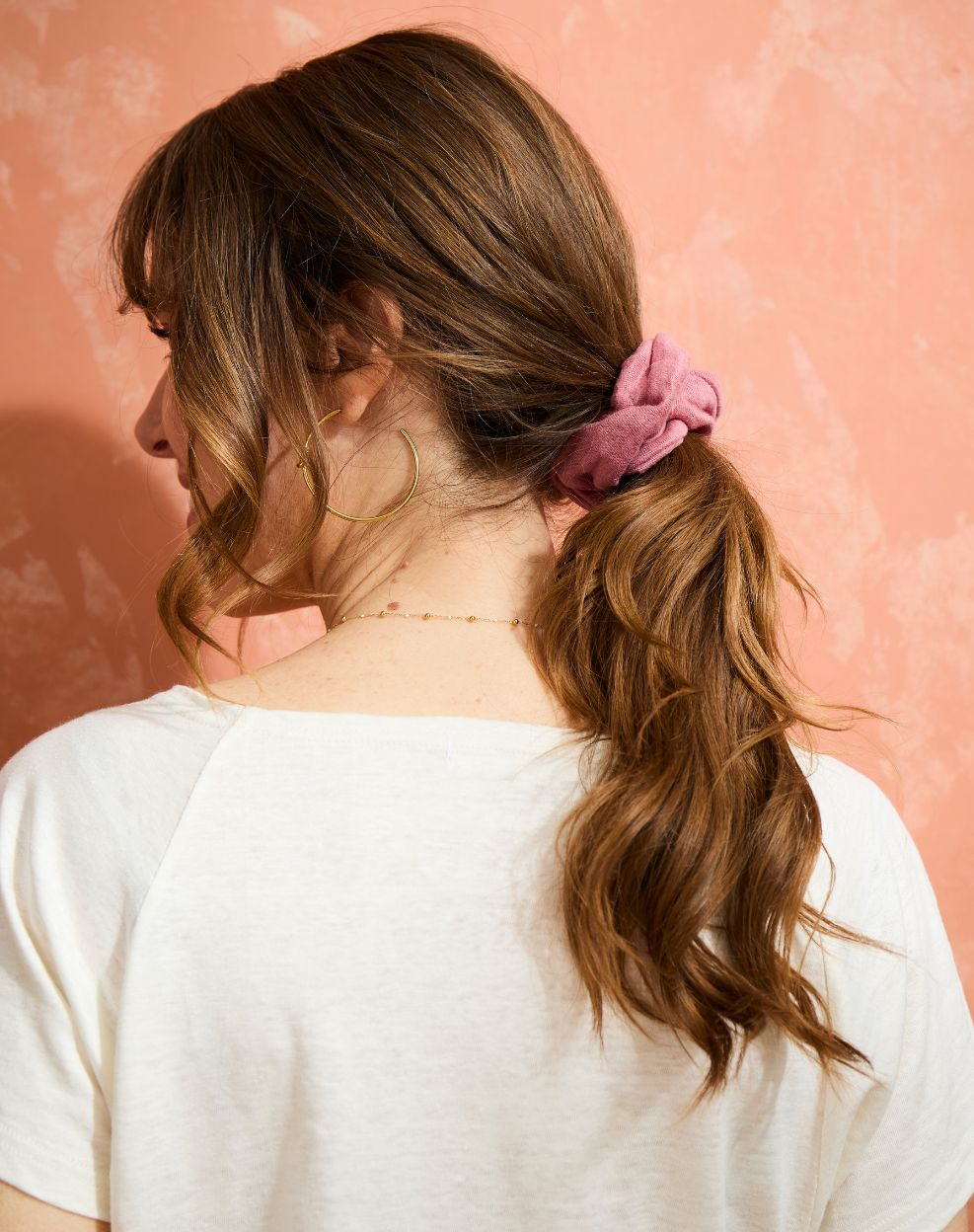 Chouchou 100% Lin - Vieux Rose | Un petit geste pour la planète, un grand impact sur votre style. Issu des chutes de lin récupérées lors de la coupe en atelier, Loulou est bien plus qu’un simple chouchou.