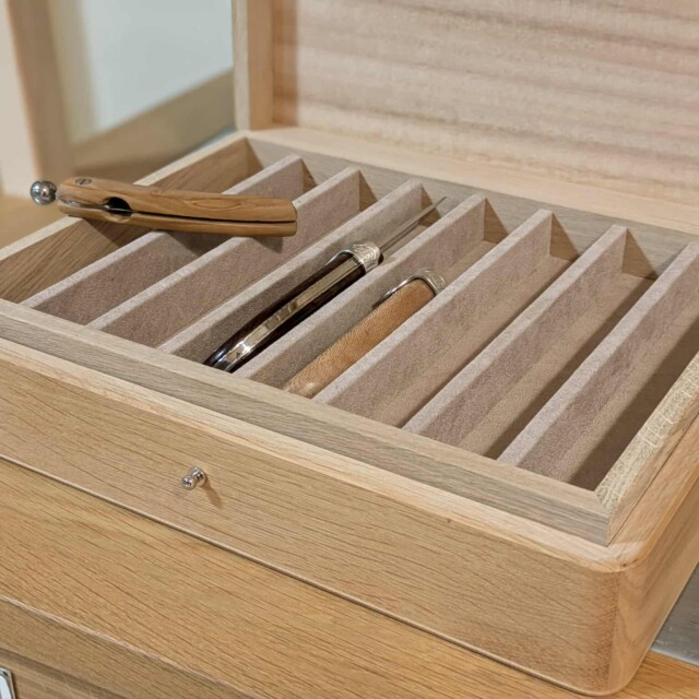 Ce coffret couteau en noyer a été conçu pour accueillir jusqu’à 16 couteaux de collection. Élégant et fonctionnel, cette boîte à couteaux met en valeur vos plus belles pièces tout en les protégeant avec soin.