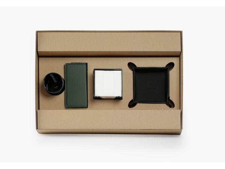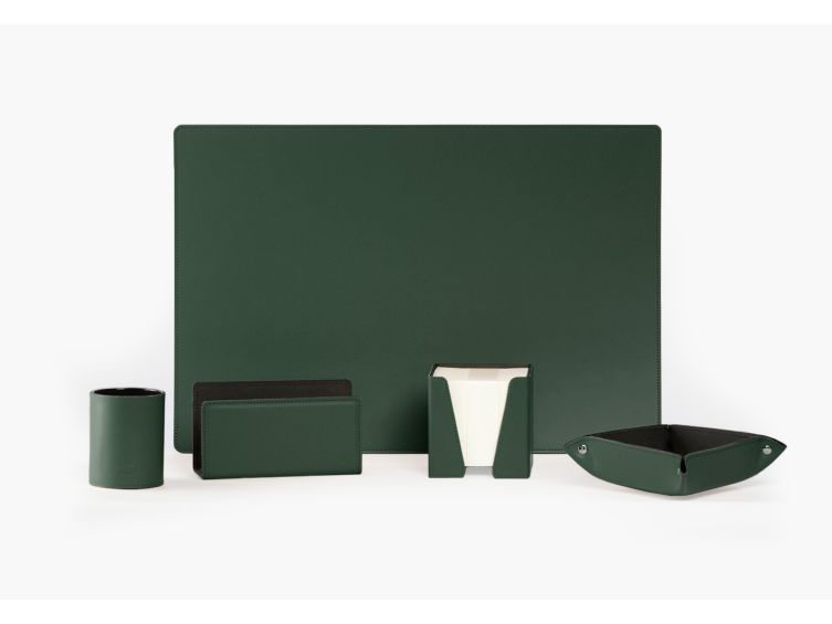 Nous vous offrons l'alliance du prestige et de l'élégance avec ce coffret de bureau apprécié par tous les amateurs de maroquinerie française. Cet ensemble est fait pour apporter une touche luxueuse et un grand confort à votre espace de travail.Fabrication 100% made in France dans un atelier EPV.Article personnalisable : cliquez ici.Articles dans ce coffret :1x Sous-main à rebord - 60x40cm1x pot à crayons en cuir1x porte-lettre en cuir1x cube à post-it en cuir1x vide poche en cuir