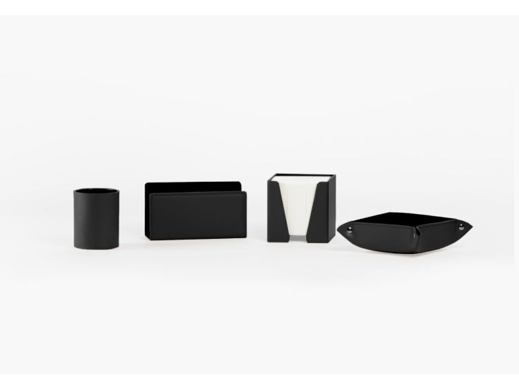 Coffret accessoires de bureau en cuir noir - COF acc.1