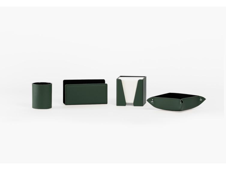 Coffret accessoires de bureau en cuir vert - COF acc.1