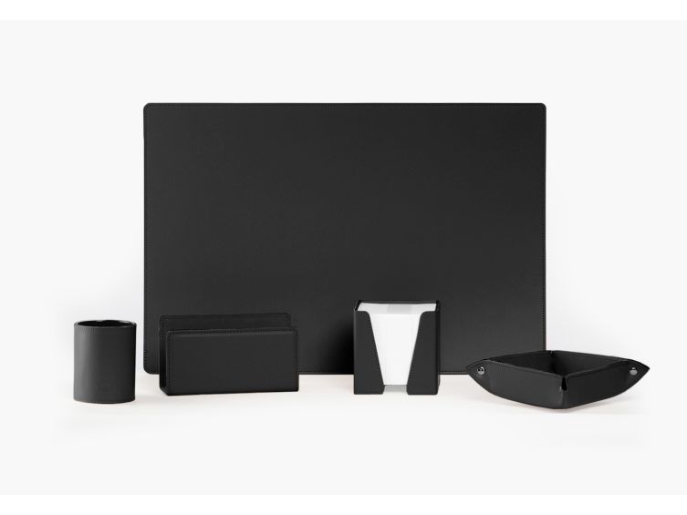 Nous vous offrons l'alliance du prestige et de l'élégance avec ce coffret de bureau apprécié par tous les amateurs de maroquinerie française. Cet ensemble est fait pour apporter une touche luxueuse et un grand confort à votre espace de travail.Fabrication 100% made in France dans un atelier EPV.Article personnalisable : cliquez ici.Articles dans ce coffret :1x Sous-main en cuir 50x34cm - collection "classique"1x pot à crayons en cuir1x porte-lettre en cuir1x cube à post-it en cuir1x vide poche en cuir