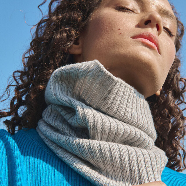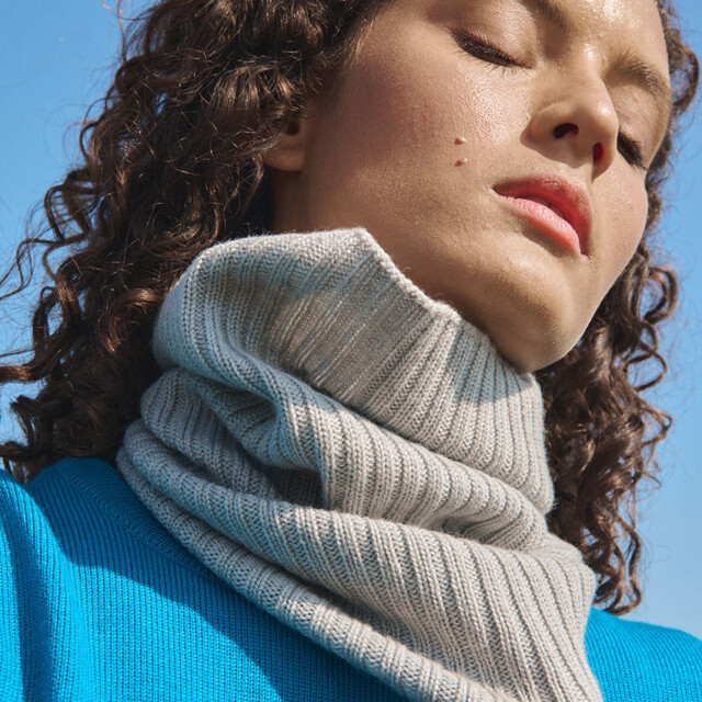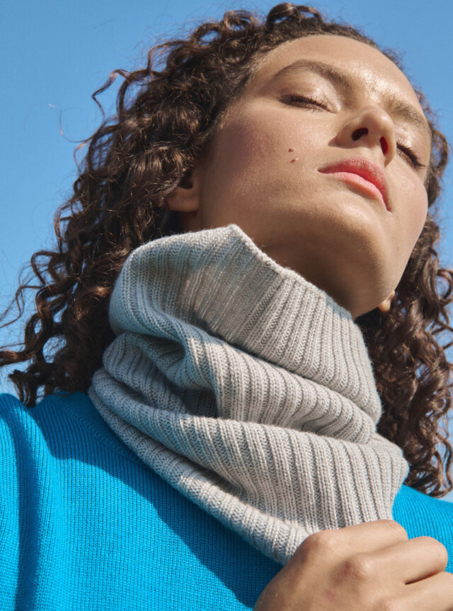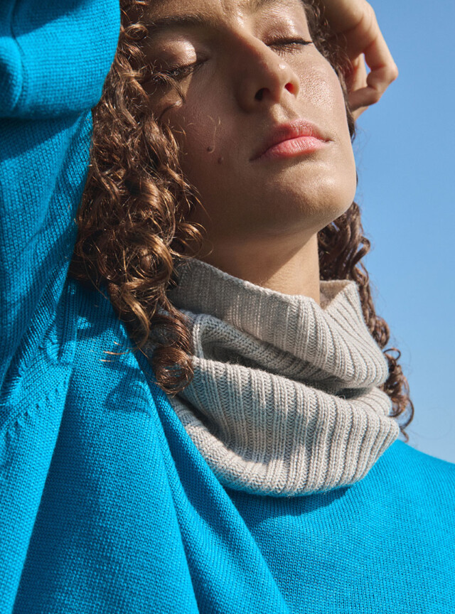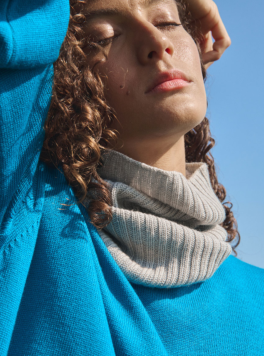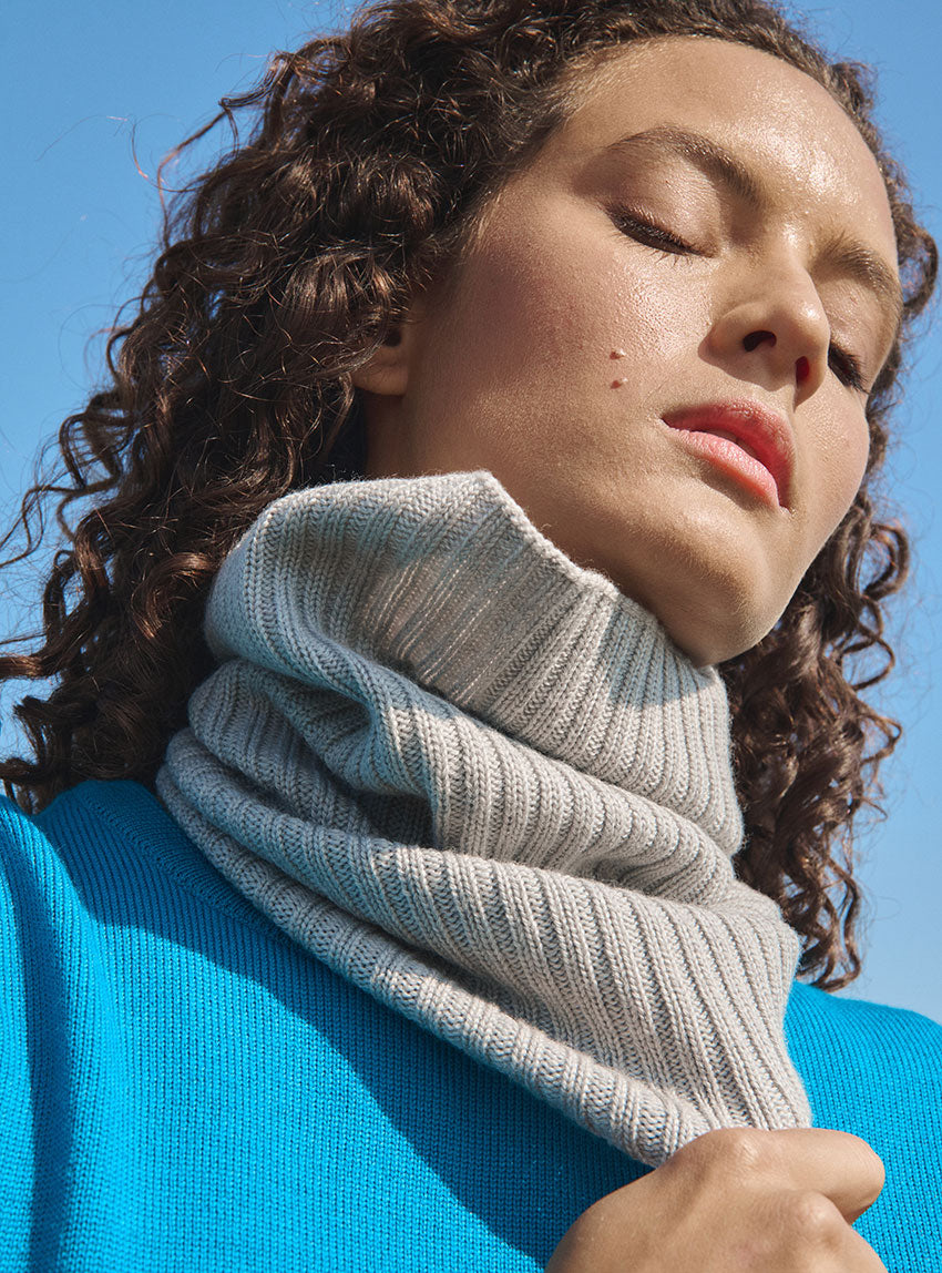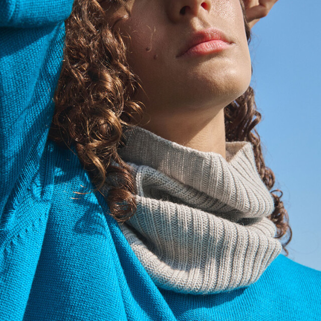 Le col Anaïs en gris souris séduit par sa douceur discrète et polyvalente. Tricoté en maille côtelée 100 % laine mérinos, il adopte une forme tubulaire façon snood, idéale pour envelopper le cou avec confort. Porté avec le pull Agathe, il crée un duo harmonieux et chaleureux. Un essentiel facile à assortir, à porter tout l’hiver.