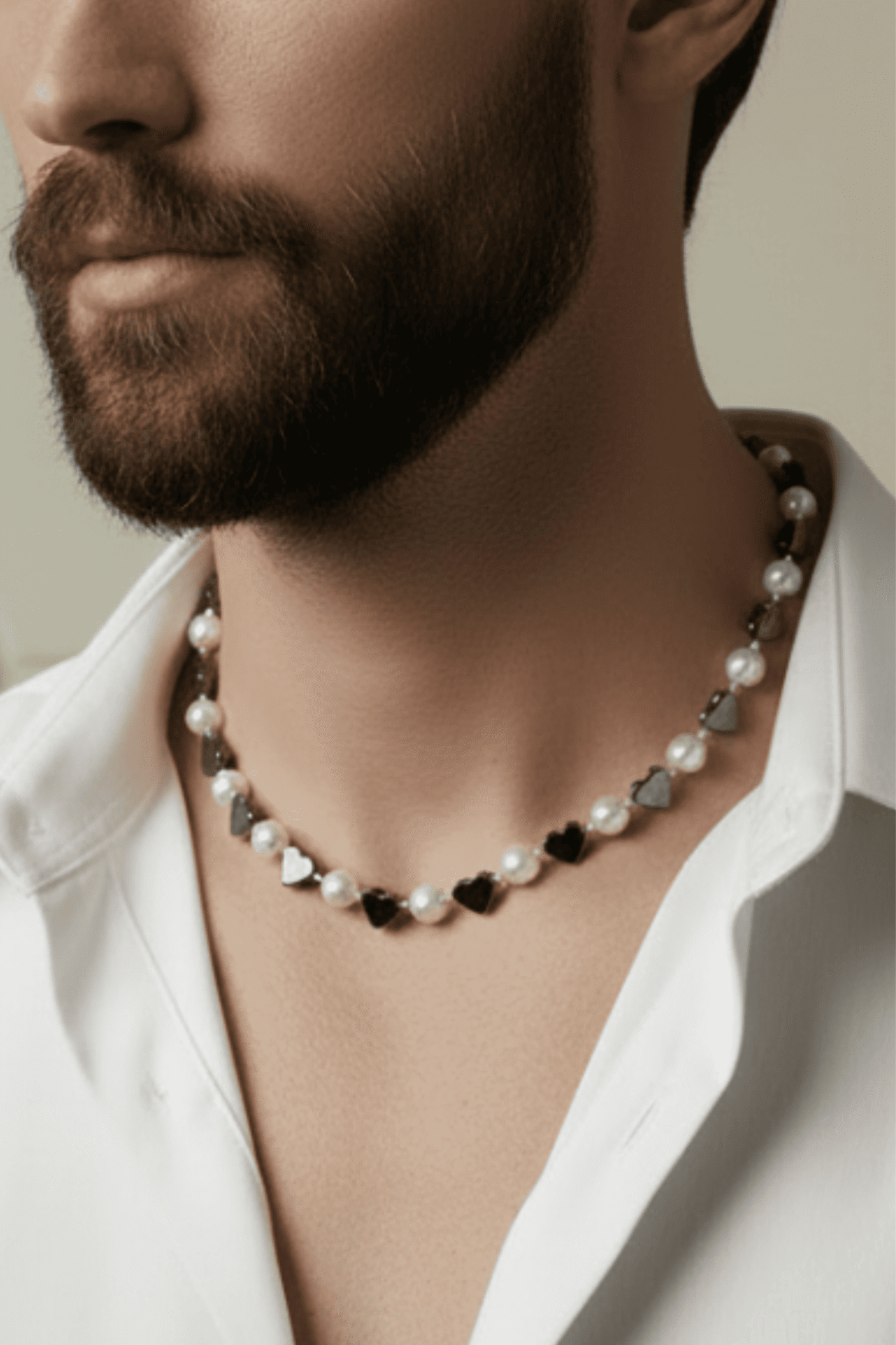 Enfilé à la main dans notre atelier parisien, ce collier est une ode à l'amour. Constitué de véritables perles d'eau douce et de coeurs en hématite, il ajoutera une touche unique à tous vos looks. Superbe pièce à porter seule ou superposée.