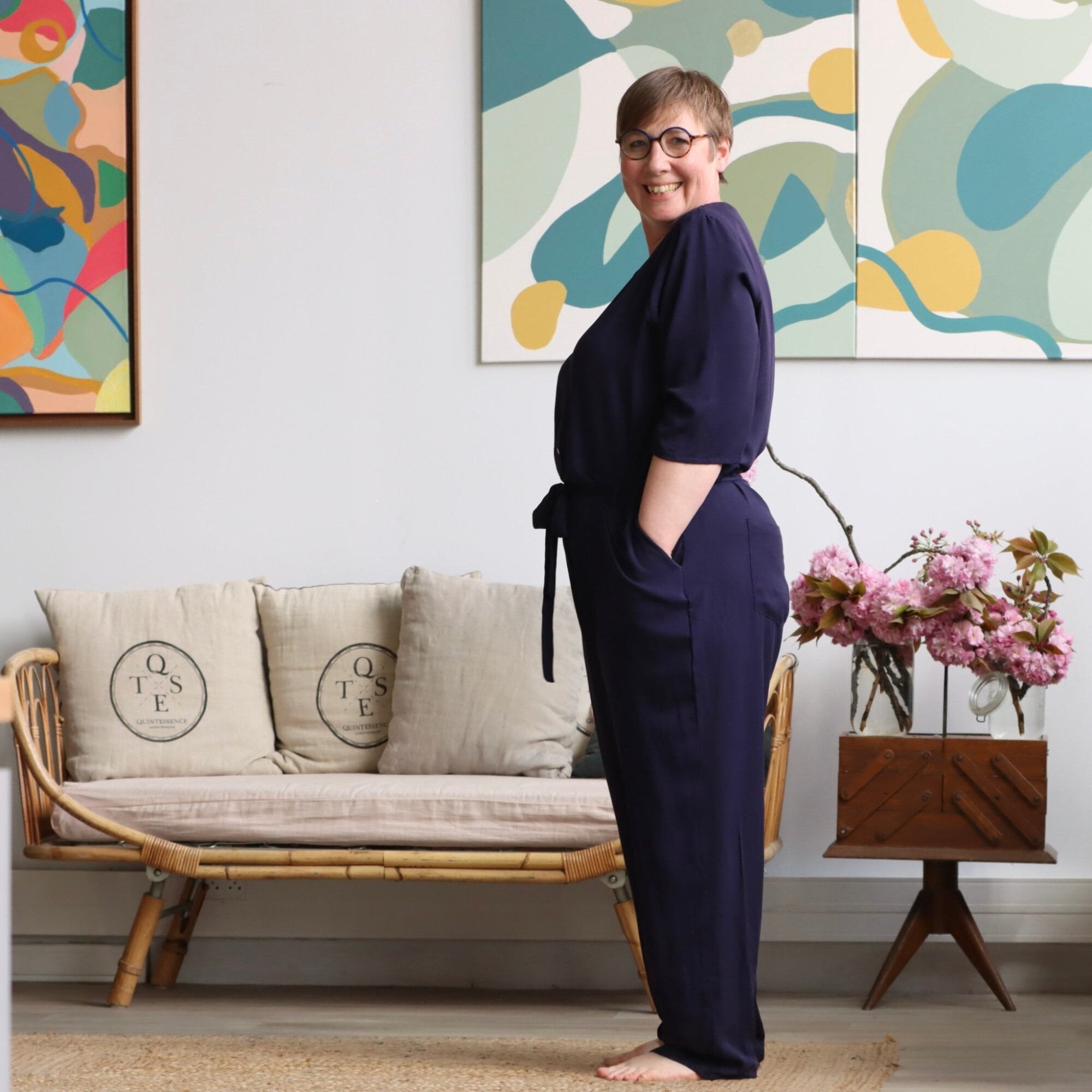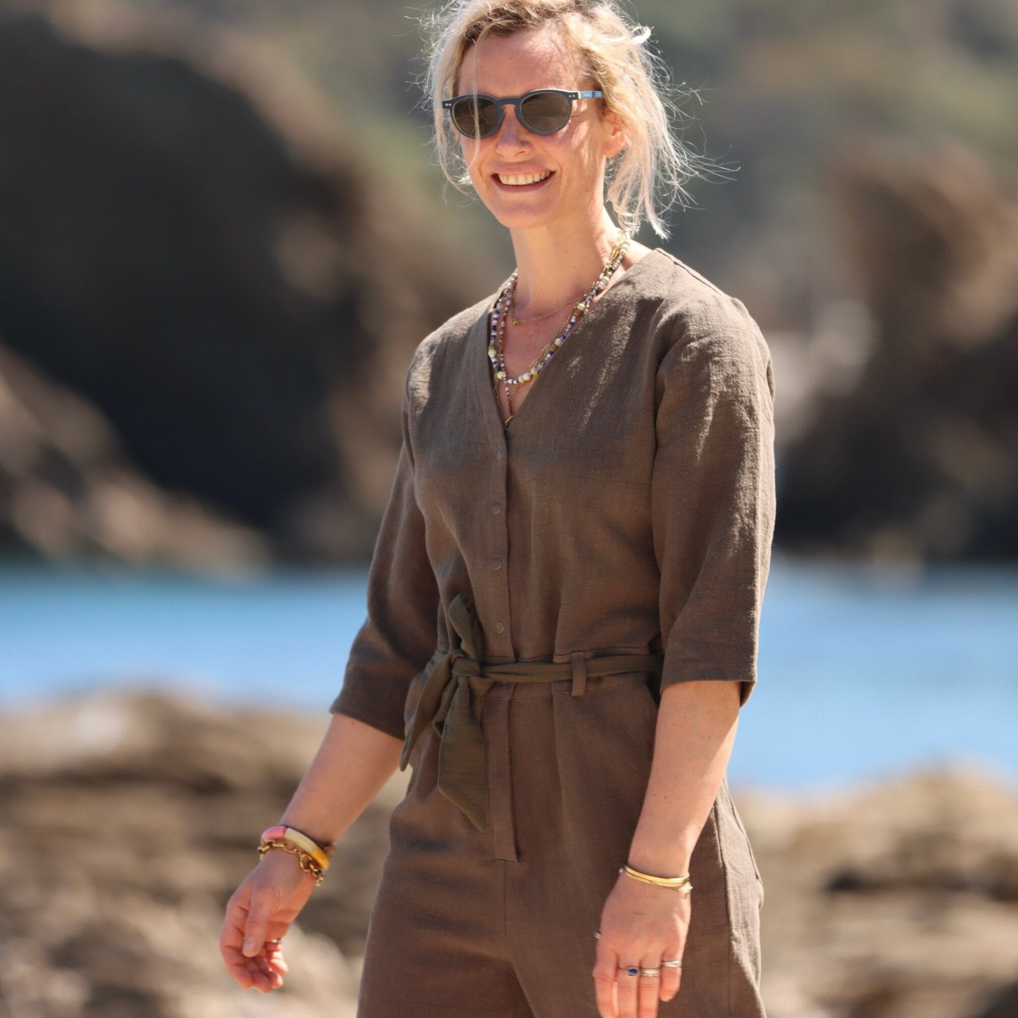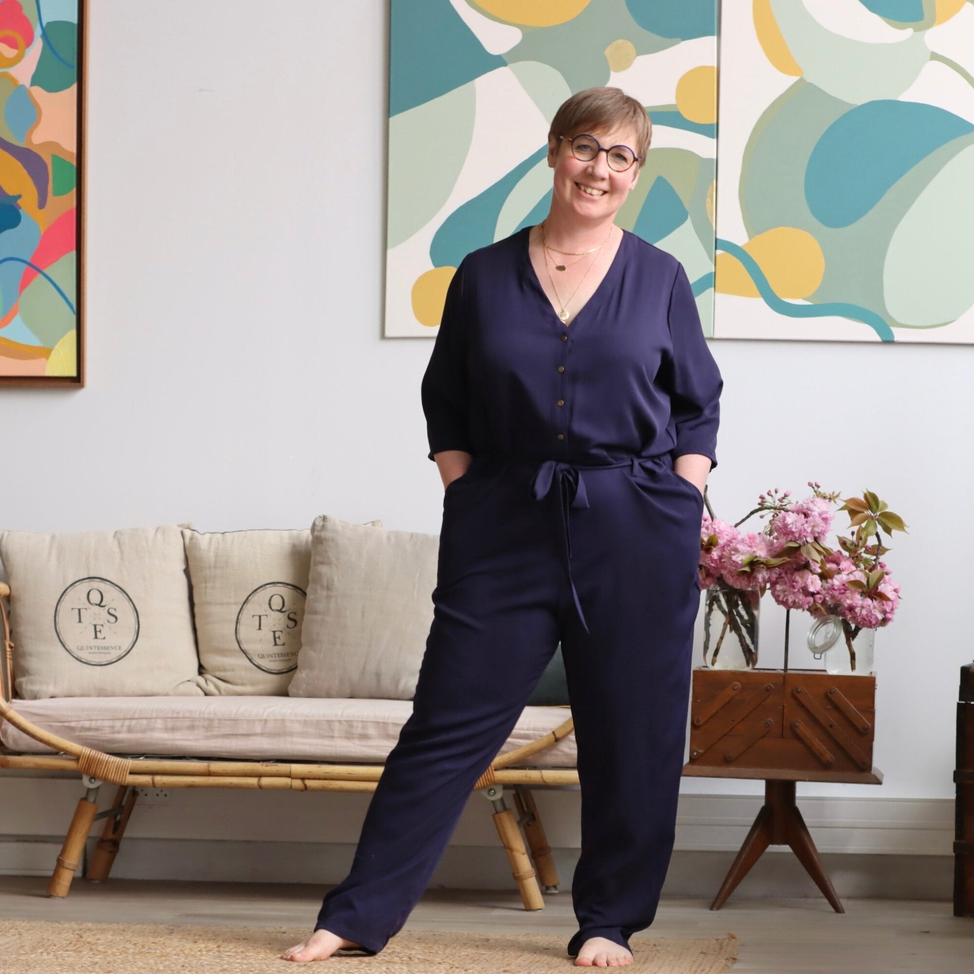 Notre combinaison Erika est à la fois élégante et confortable. Dotée d'une fermeture pressionnée et d'un décolleté en V flatteur, elle comporte également des poches discrètes sur les côtés ainsi que des poches plaquées à l'arrière pour plus de praticité.
