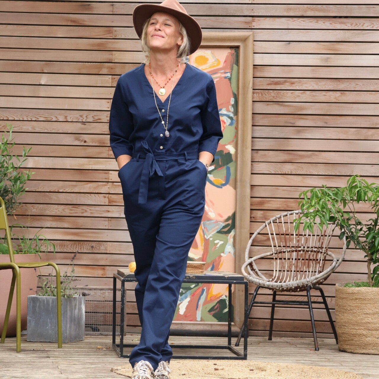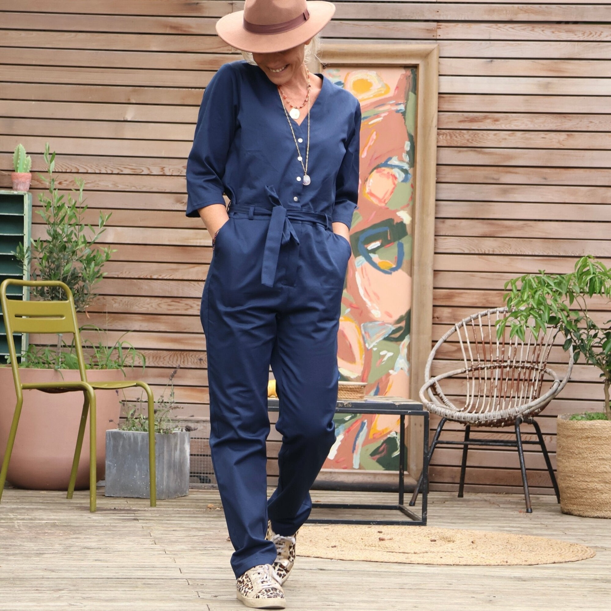 Notre combinaison Erika est à la fois élégante et confortable. Dotée d'une fermeture pressionnée et d'un décolleté en V flatteur, elle comporte également des poches discrètes sur les côtés ainsi que des poches plaquées à l'arrière pour plus de praticité.