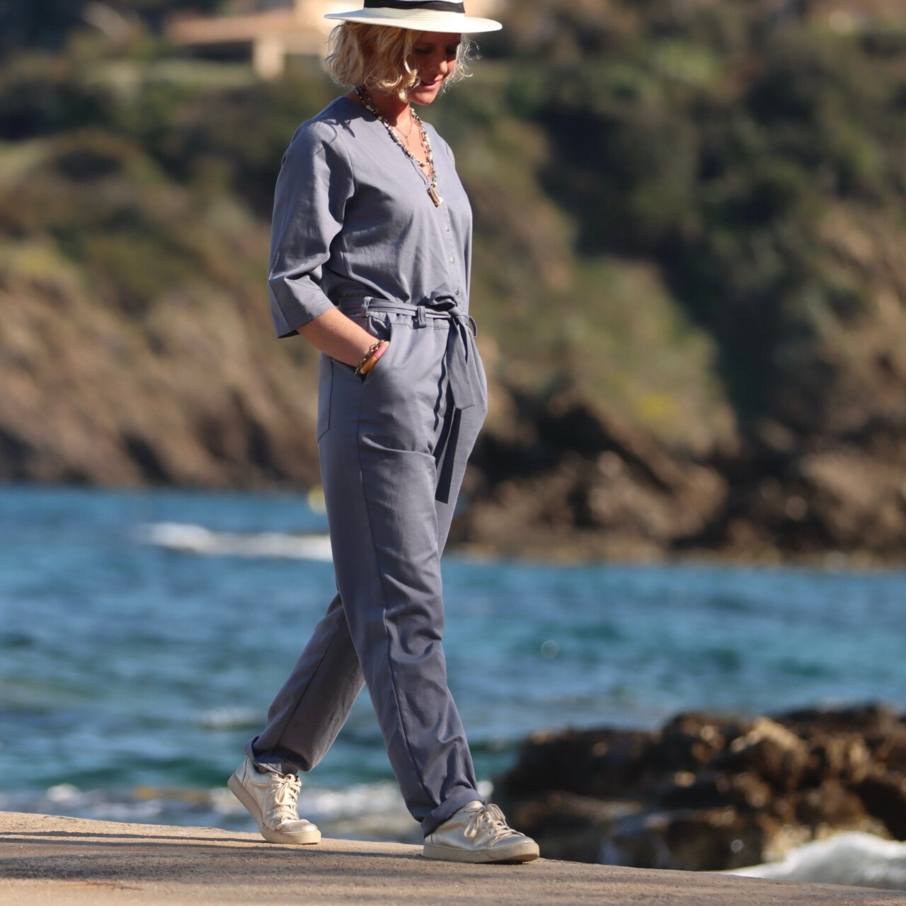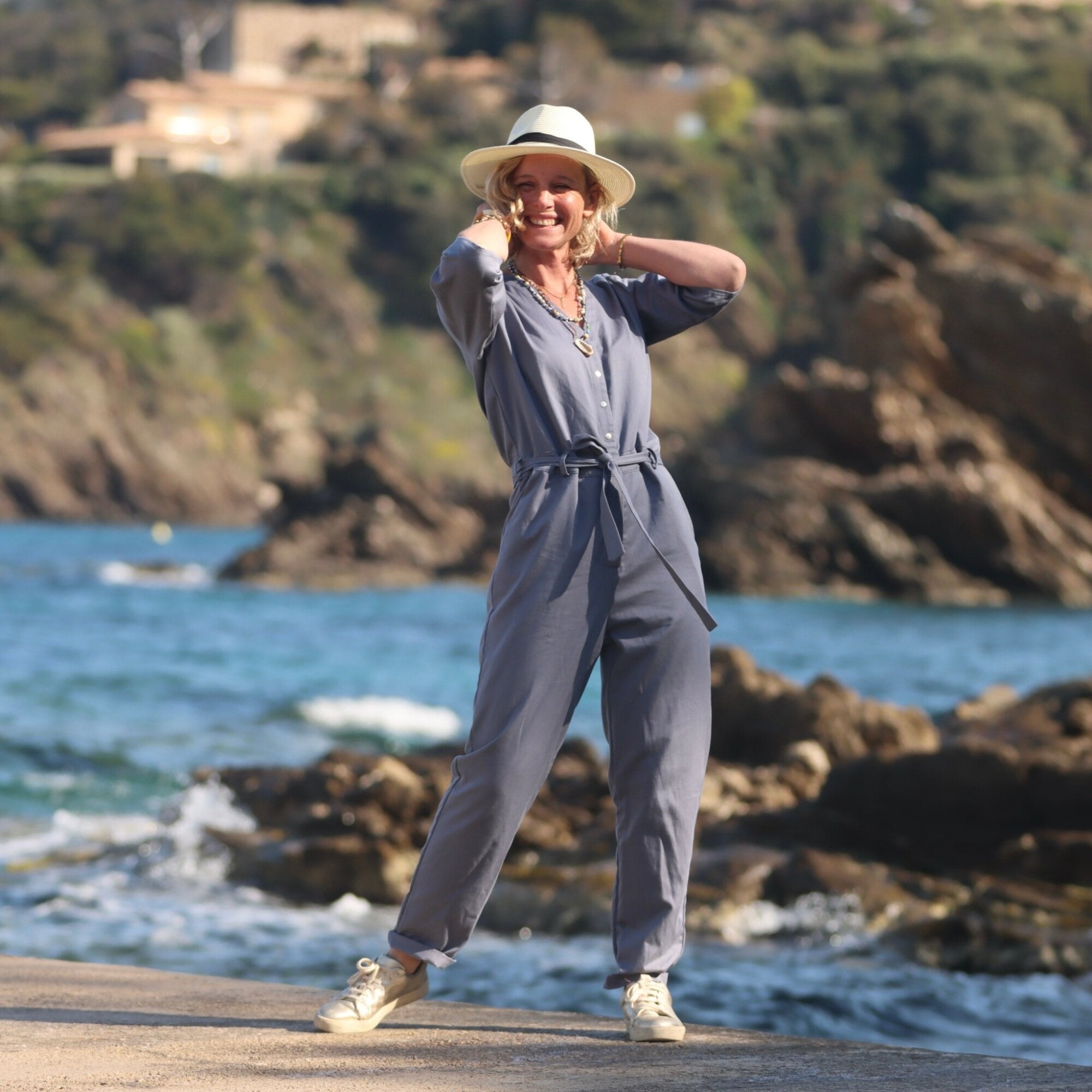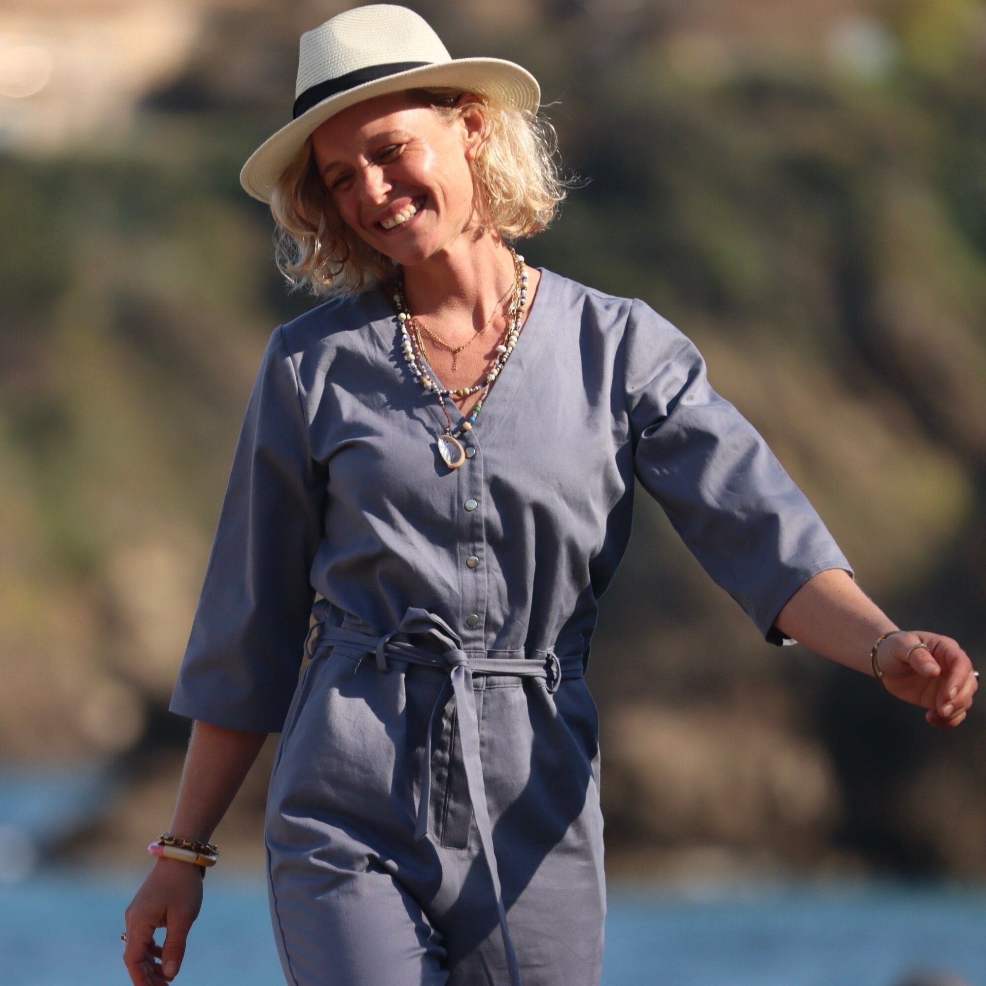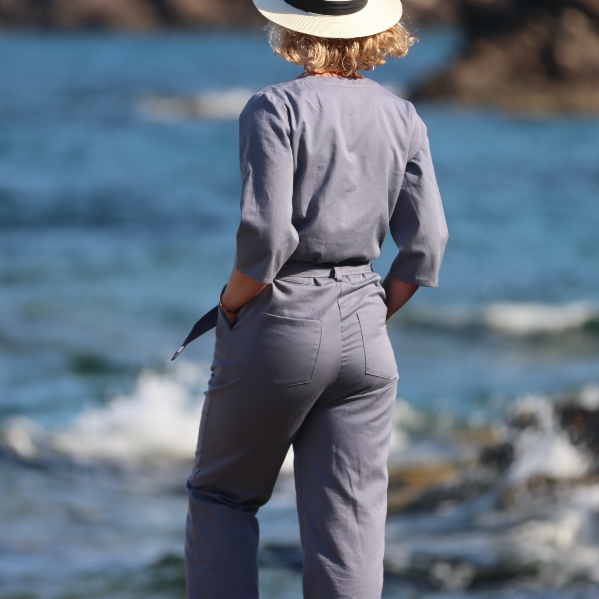 Notre combinaison Erika est à la fois élégante et confortable. Dotée d'une fermeture pressionnée et d'un décolleté en V flatteur, elle comporte également des poches discrètes sur les côtés ainsi que des poches plaquées à l'arrière pour plus de praticité.