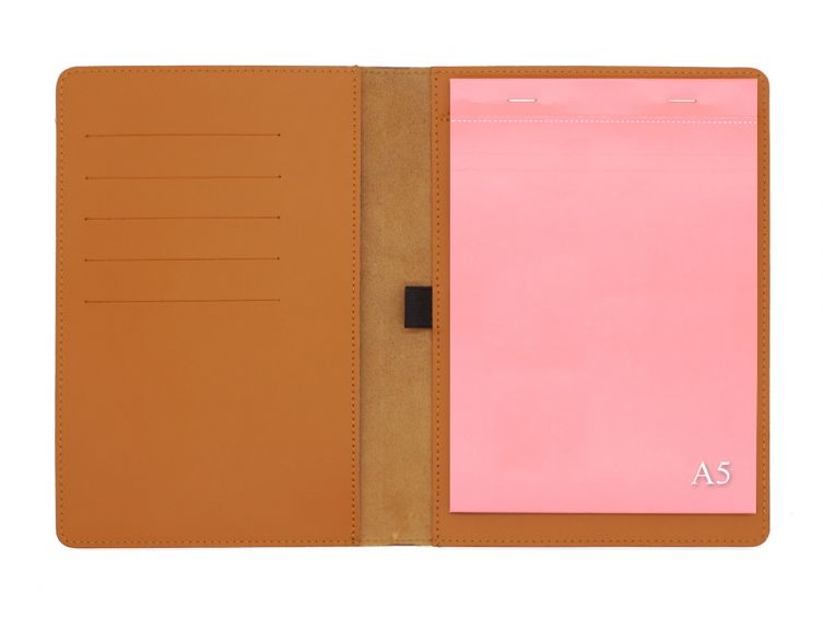 Conférencier A5 en cuir goldArticle personnalisable : cliquez ici.Idéal pour prendre des notes en réunion ou en extérieur. Pratique pour mettre votre bloc note (fourni), il dispose d'un emplacement élastique pour votre stylo et de 5 emplacements pour vos cartes de visites, vous pouvez ranger vos feuilles volantes dans son rabat de gauche.Fabrication artisanale française.