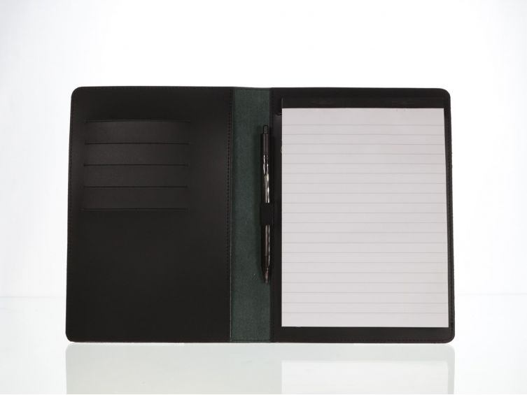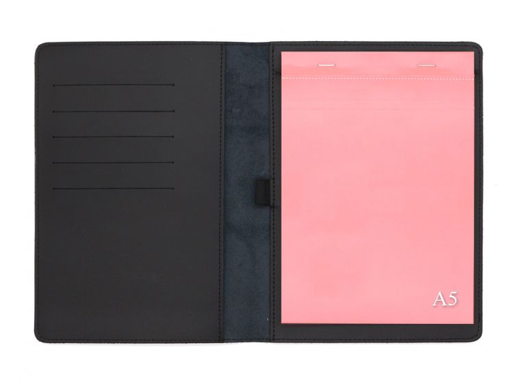 Conférencier A5 en cuir noirArticle personnalisable : cliquez ici.Idéal pour prendre des notes en réunion ou en extérieur. Pratique pour mettre votre bloc note (fourni), il dispose d'un emplacement élastique pour votre stylo et de 5 emplacements pour vos cartes de visites, vous pouvez ranger vos feuilles volantes dans son rabat de gauche.Fabrication artisanale française.