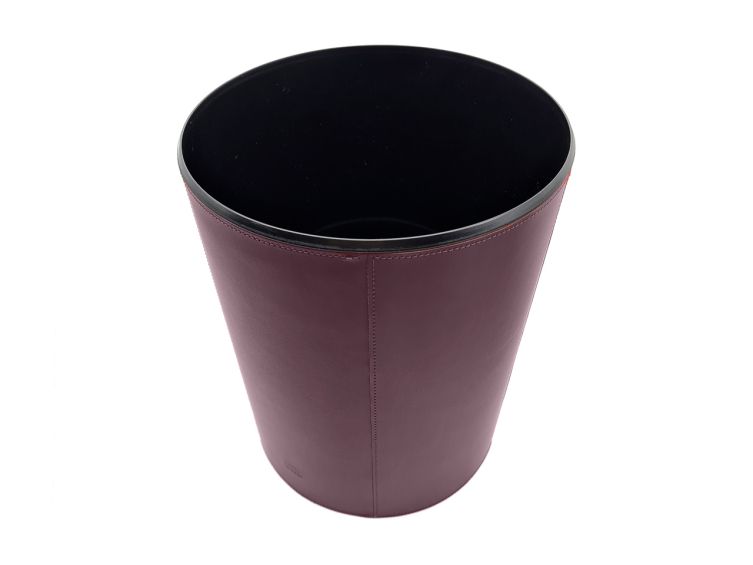 Corbeille à papier en cuir bordeaux