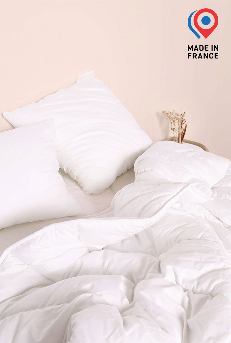 Envie d'une couette gonflante qui respecte votre sommeil et l'environnement ? Découvrez notre couette tempérée enveloppée de pur coton biologique. Grâce à son garnissage de 350g/m², elle offre une chaleur idéale tout au long de l'année et une excellente respirabilité pour limiter la transpiration nocturne. Un basique de qualité, confectionné en France, pour un confort simple, généreux et accessible à tous.Made in France