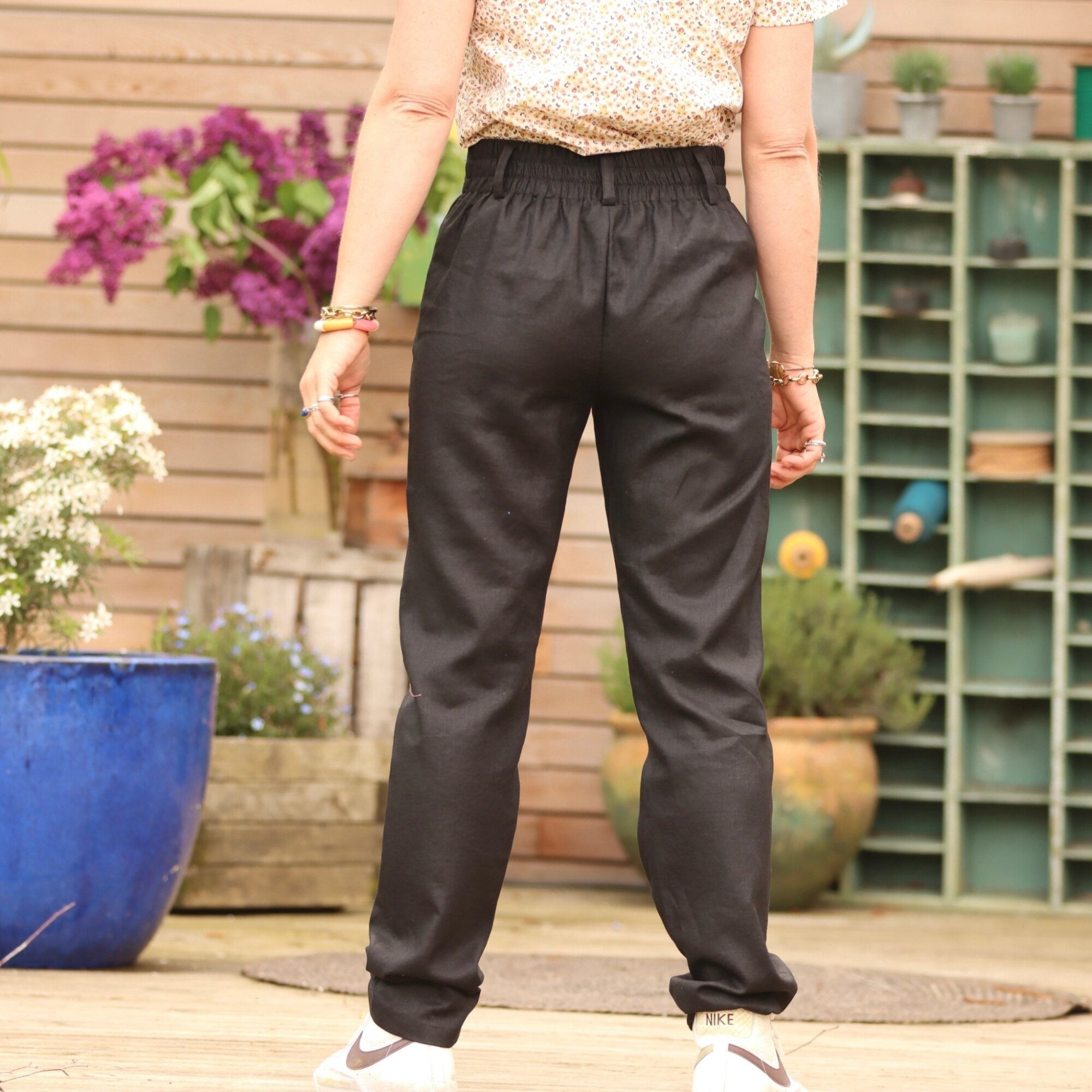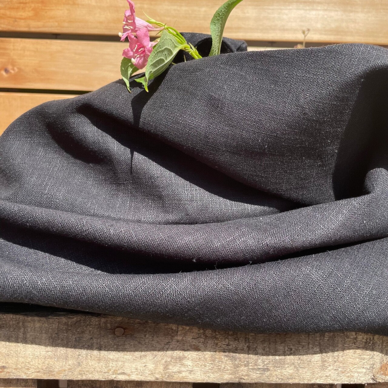 Lin noir. 130x160cm Tissu utilisé pour le pantalon Marcus.