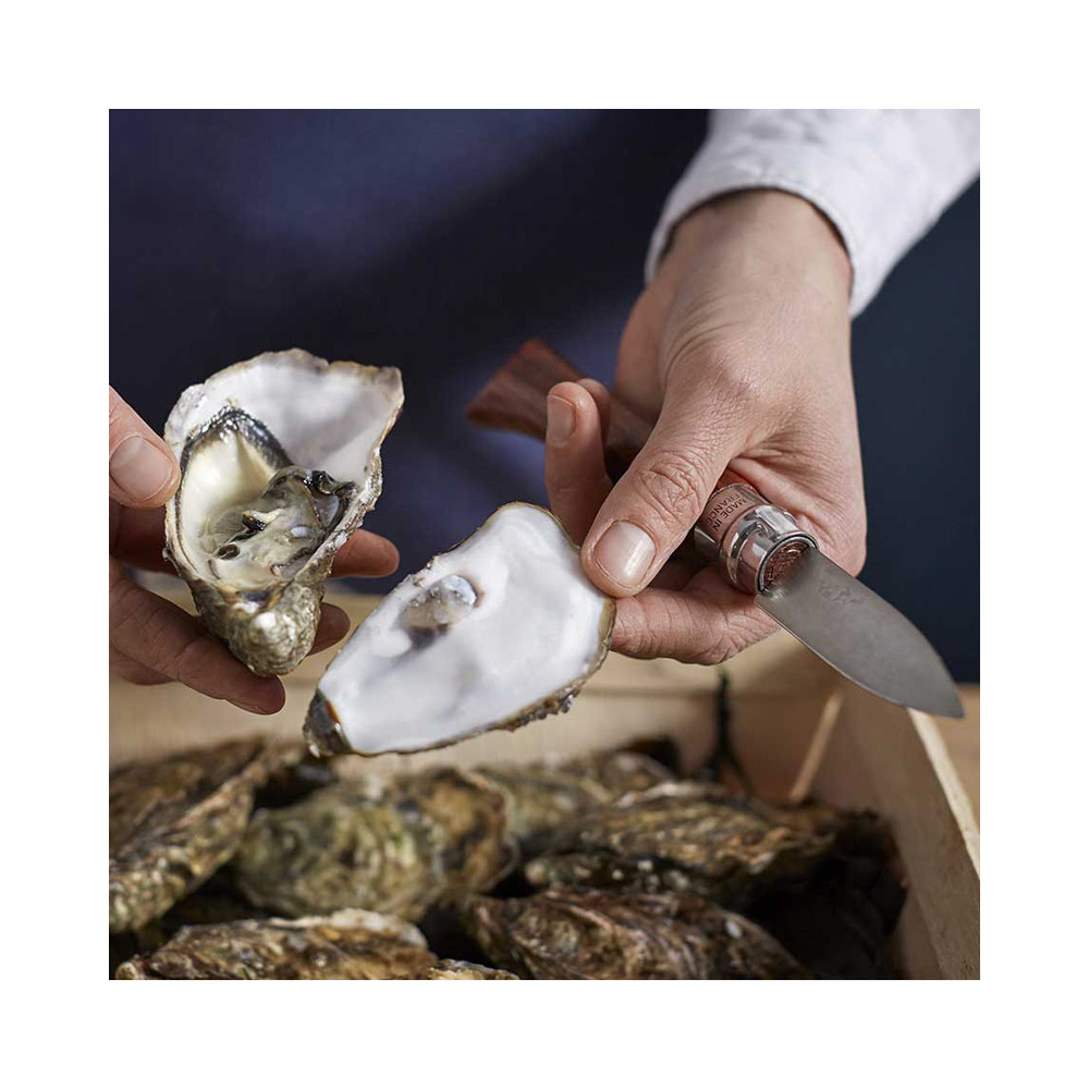 Le couteau à huîtres n°9 est fabriqué en France par Opinel. La lame a une longueur de 6.5cm.