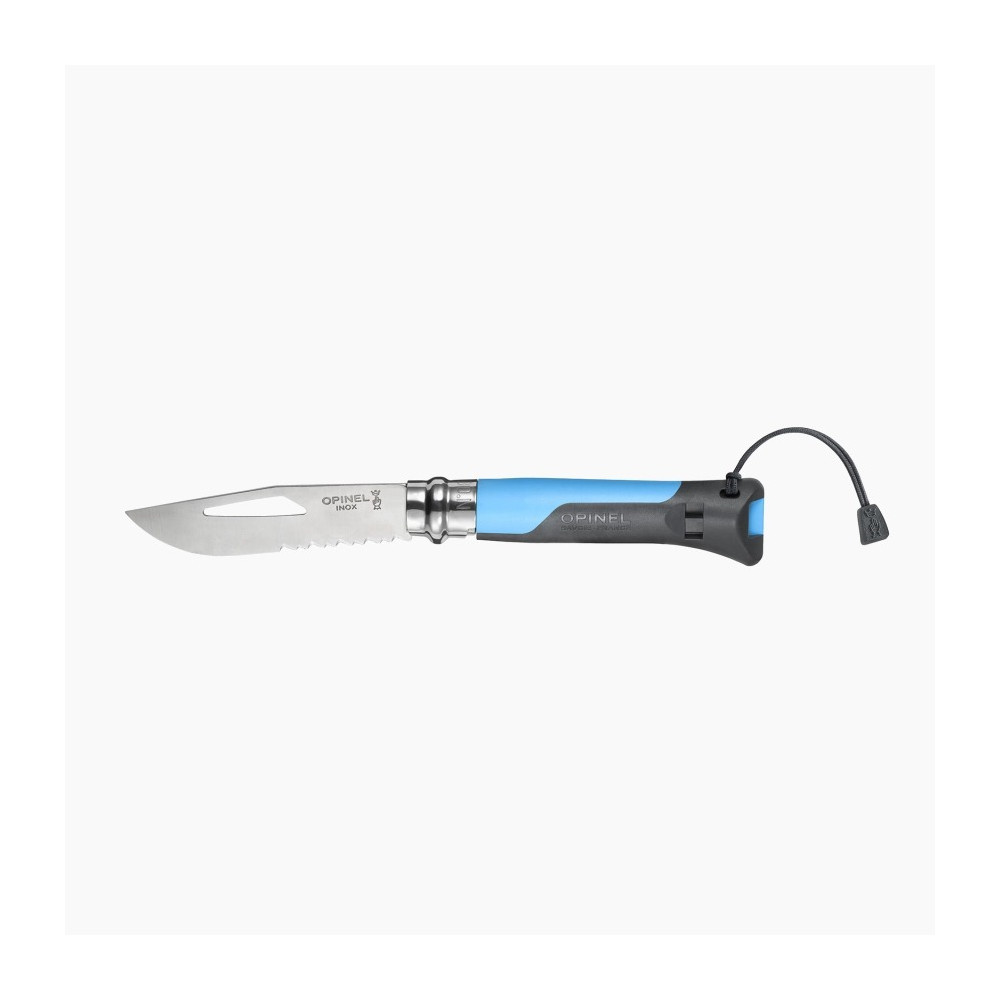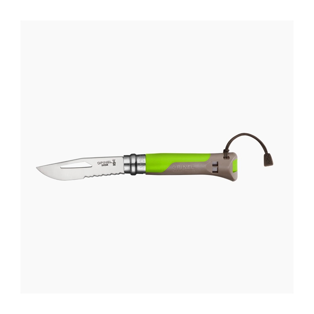 Couteau n°8 Tradition Outdoor, fabriqué en France par Opinel. Un couteau pliant/fermant conçu pour les sportifs, pour les aventuriers, en mer ou en montagne, pour de la voile, de l'alpinisme, du canyoning, de la spéléo, du trek, du parapente..