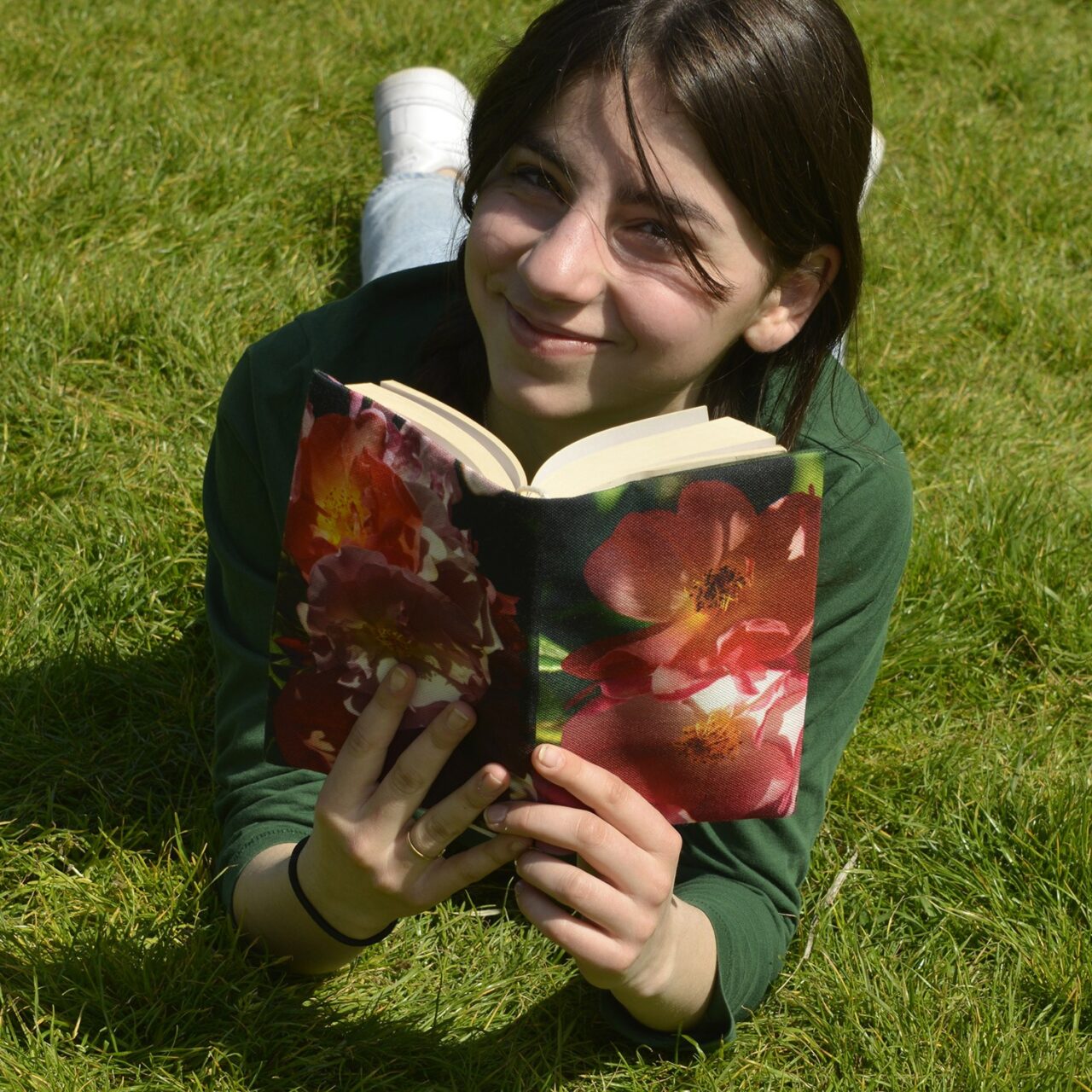 Ce couvre livre original Fleurs, Rose de France, de Maron Bouillie est idéal pour protéger vos livres de poche. Il est fabriquée en France dans des tissus éco-responsables.