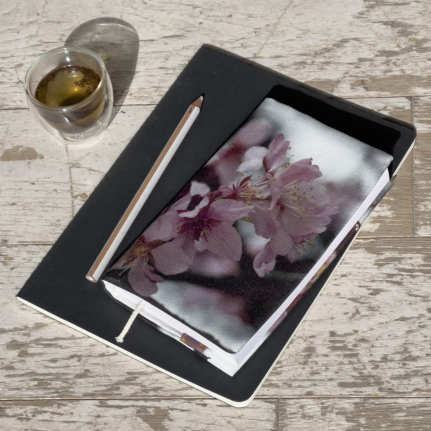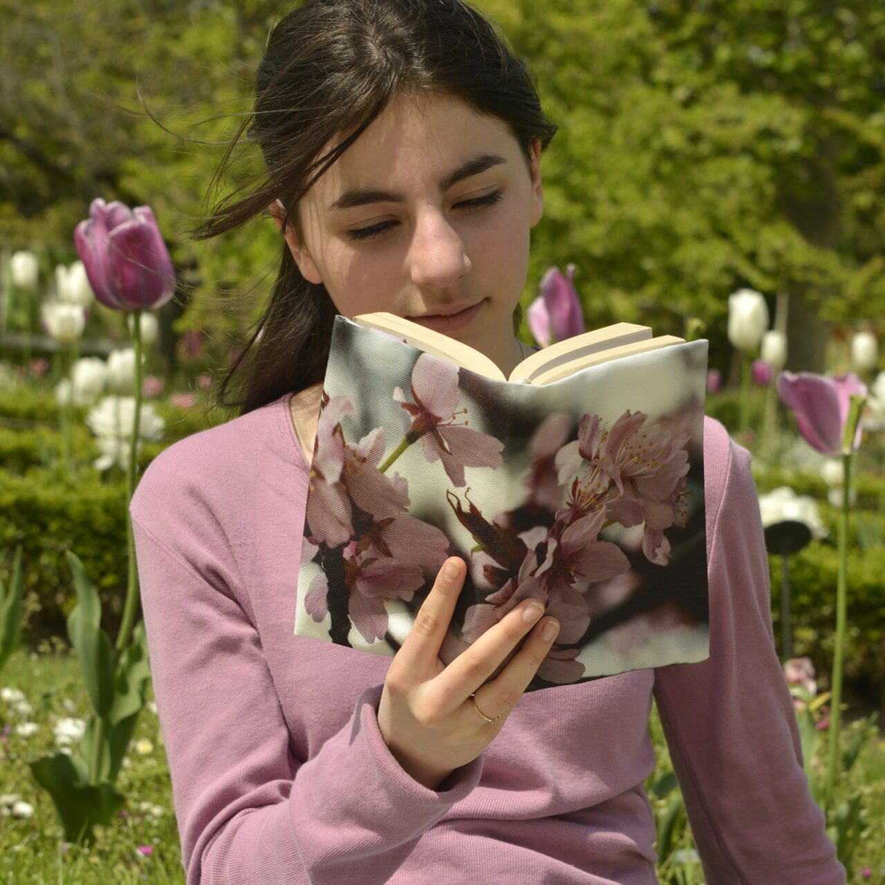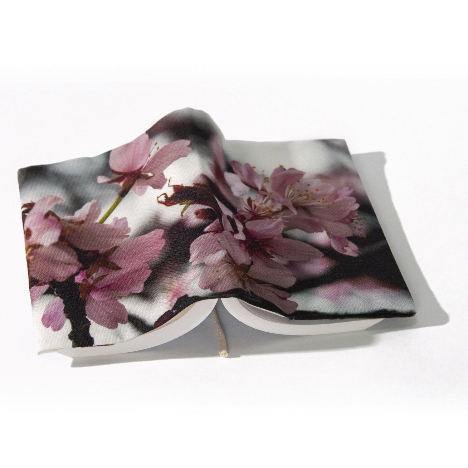 Ce couvre livre original Fleurs, Cerisier d'Hiver, de Maron Bouillie est idéal pour protéger vos livres de poche. Cette pochette est fabriquée en France.