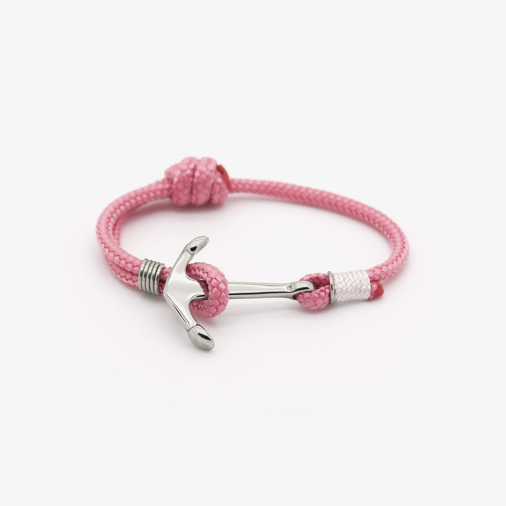 Bracelet réglable grâce à son nœud coulissant Tour de poignet allant de 11cm à 16cm Ancre en acier inoxydable de 21.5mm * 28.5mm * 4mm Paracorde 425 (3mm) : Rose Nanoparacorde : Blanc Anneaux : Acier inoxydable Coz Pors : Plage de Trégastel (22) Ce bracelet est porté par Héléa qui a un tour de poignet de 12,5cm.