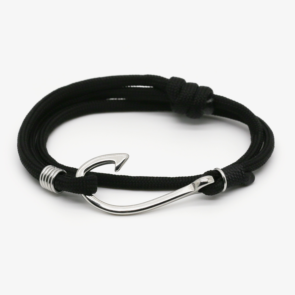 Bracelet pour homme Bracelet réglable grâce à son nœud coulissant Tour de poignet allant de 17cm à 21cm Bijou en acier inoxydable : Hameçon de 17mm * 39.5mm * 7mm Paracorde 550 (4mm) Nanoparacorde Anneaux : Acier inoxydable Créac'h : Phare de l'île de Ouessant en Bretagne
