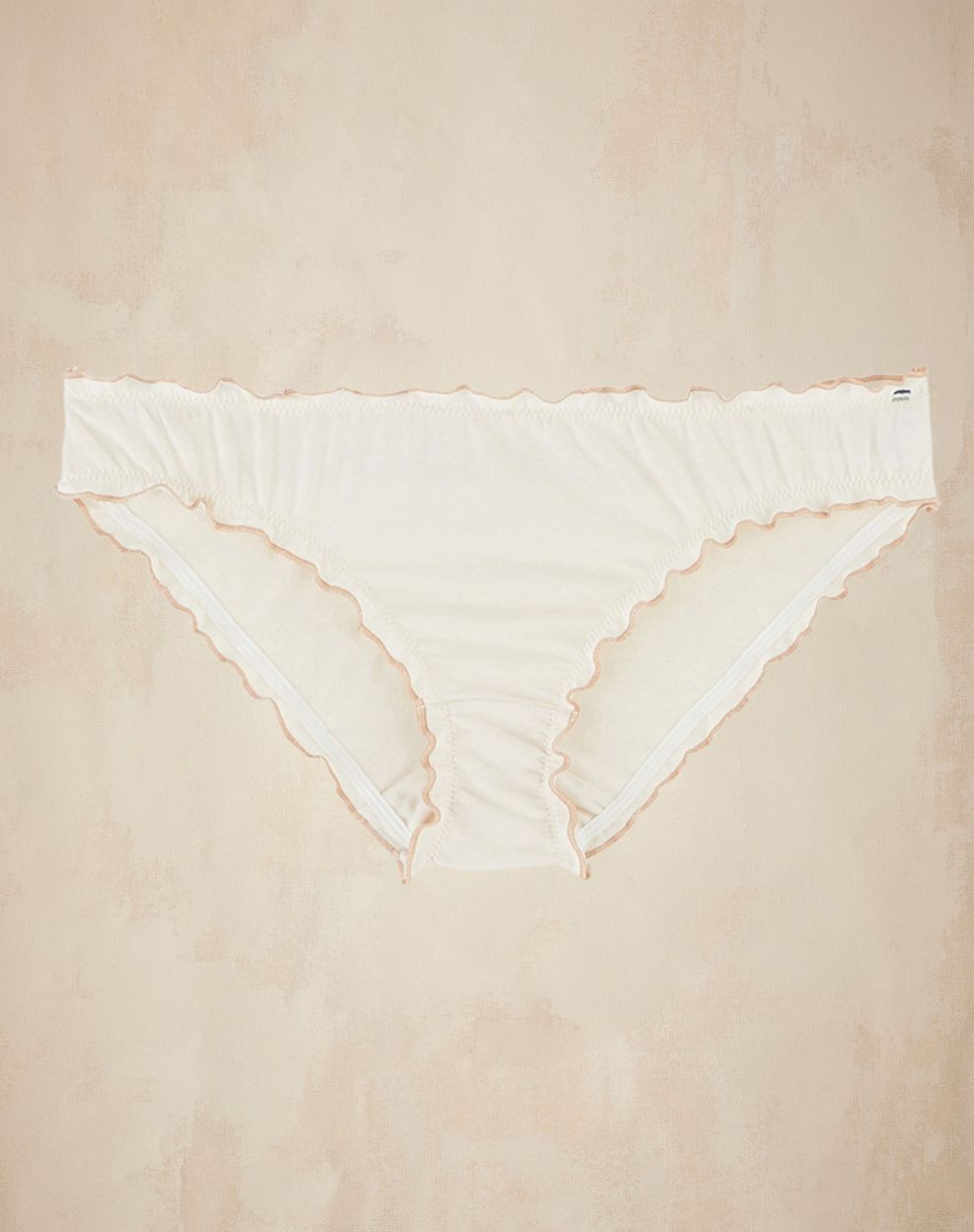 Culotte bloomer en Coton BIO - Naturel - Blanc - Femme | Un clin d'œil aux années 70' Les petits volants de cette culotte bio s'accordent parfaitement à l'esprit espiègle et champêtre de ce modèle froufrou. La culotte coton bio coloris naturel idéal pour se sentir bien sous son jean, pour flâner le dimanche au petit déjeuner ou pour dormir ! Produit 100 % français durable et intemporel.