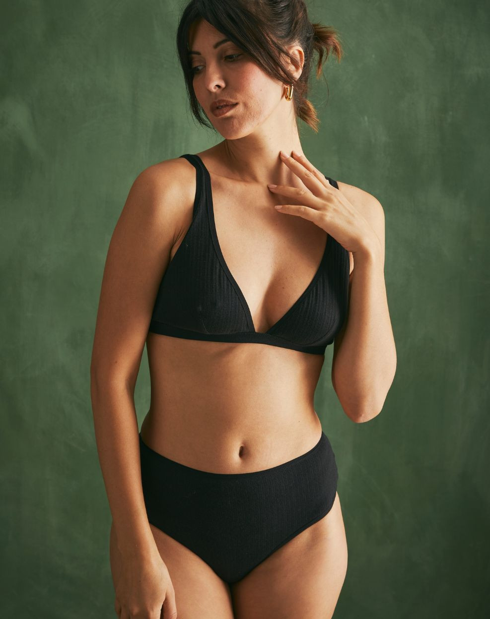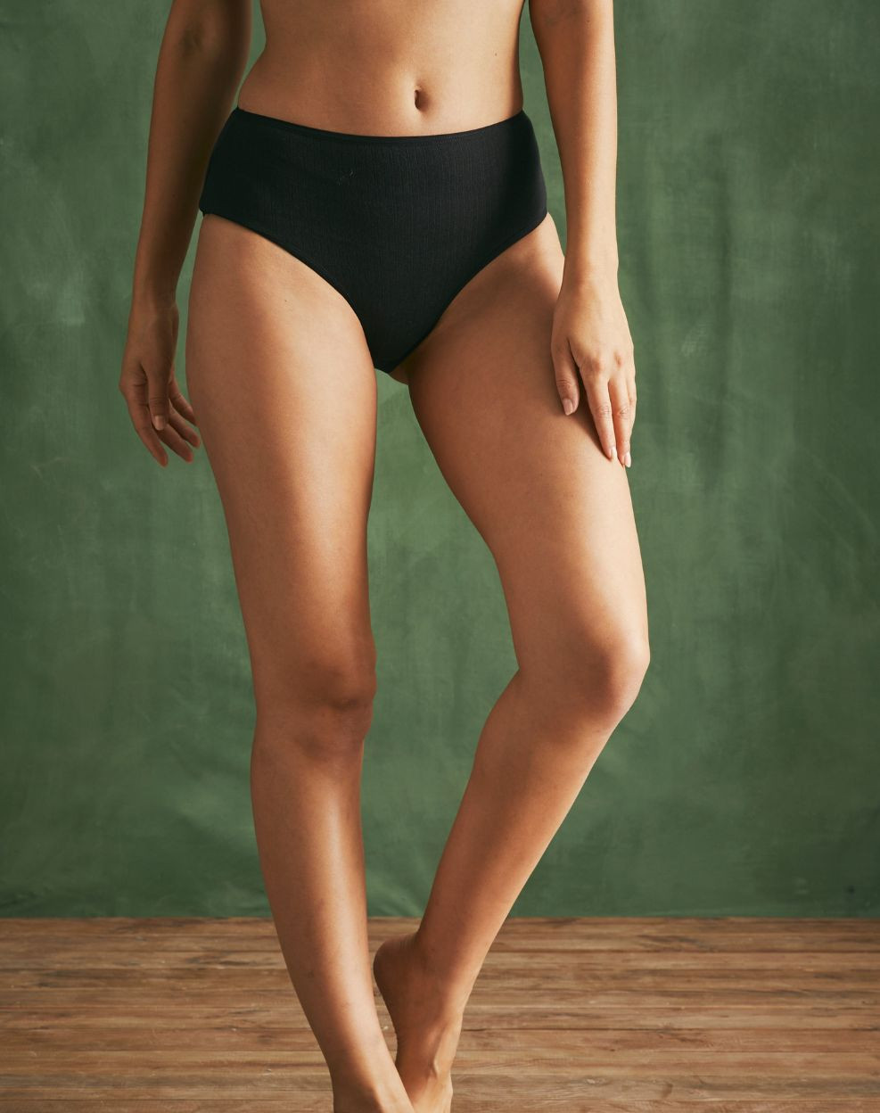 Culotte taille haute en Coton BIO côtelé - Noir - Femme | La culotte taille haute qui affirme du caractère avec sa maille côtelée.Notre culotte taille haute côtelée redéfinit l'élégance au quotidien.