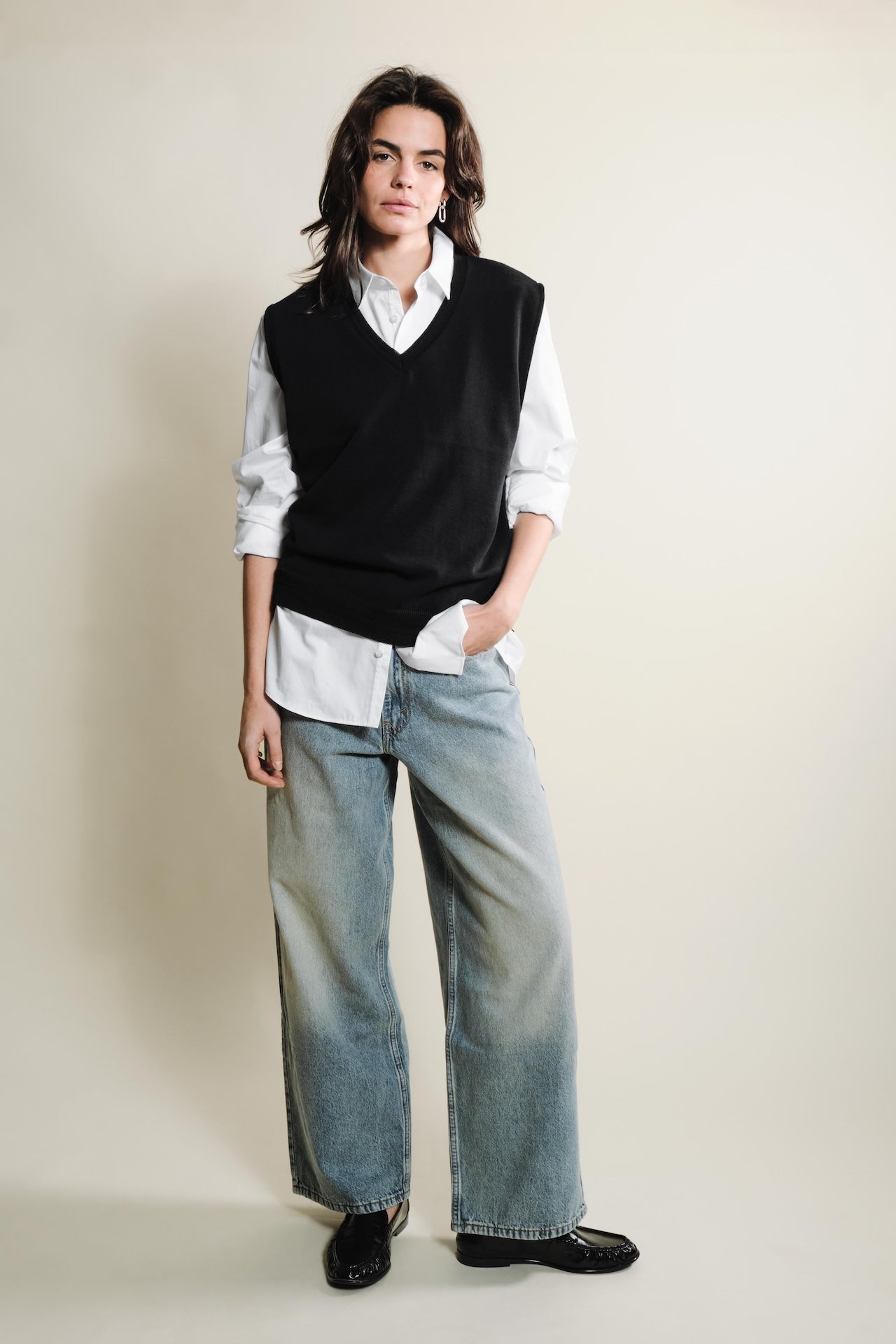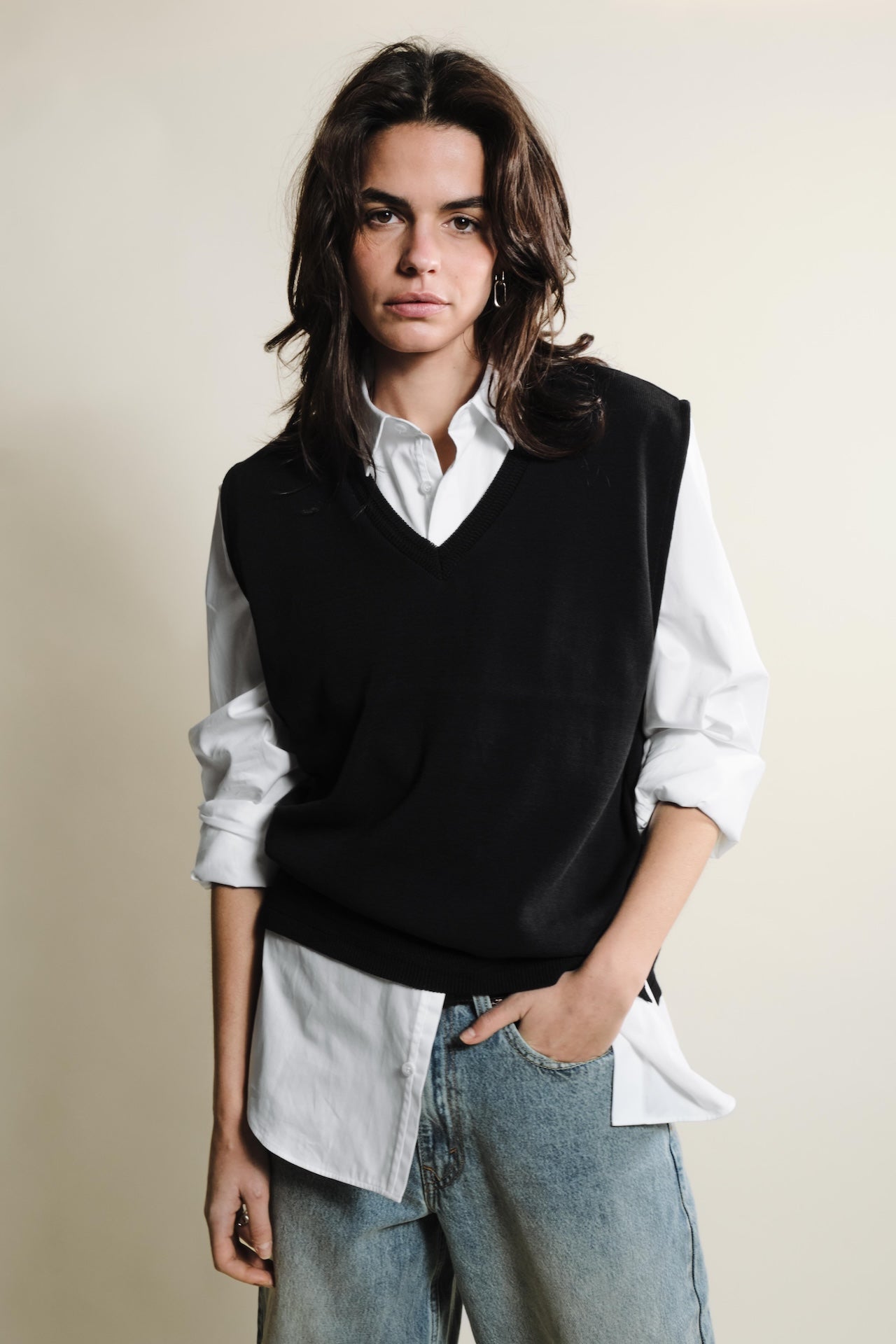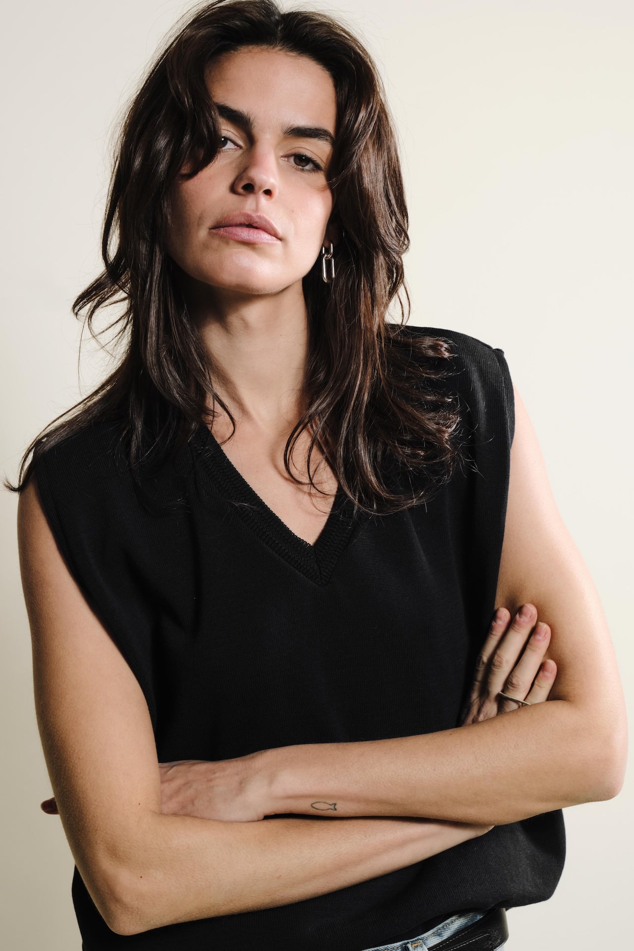 Le débardeur Loucine à col V séduit par sa coupe ample et son tombé fluide, offrant une silhouette élégante et naturelle. Léger et respirant, il est parfait pour les journées chaudes et les tenues estivales. Son tricotage en jersey fin et travaillé aux emmanchures, au col et au bas de pièce souligne une finition soignée et un raffinement discret. Le fil sec au toucher frais assure un confort optimal tout au long de la journée. Confectionné en coton 100 % biologique et certifié GOTS, OCS Blended et OEKO-TEX® Standard 100, ce débardeur noir est une pièce qui allie qualité, durabilité et respect de l'environnement, facile à associer pour un style estival chic et naturel. Matière : 100 % coton bio, labellisé OEKO-TEX standard 100 Tricotage : Jersey serré sur toute la pièce Coupe : Ample et fluide Finitions : emmanchure, col et bas de pièce travaillés Toucher : Sec et frais