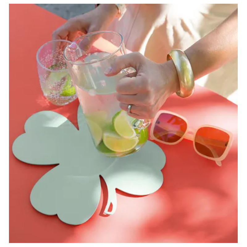 Fermob fabrique en France ce dessous de plat trèfle. Ce dessous de plat mesure 27cm de diamètre.Il résiste parfaitement à la chaleur.