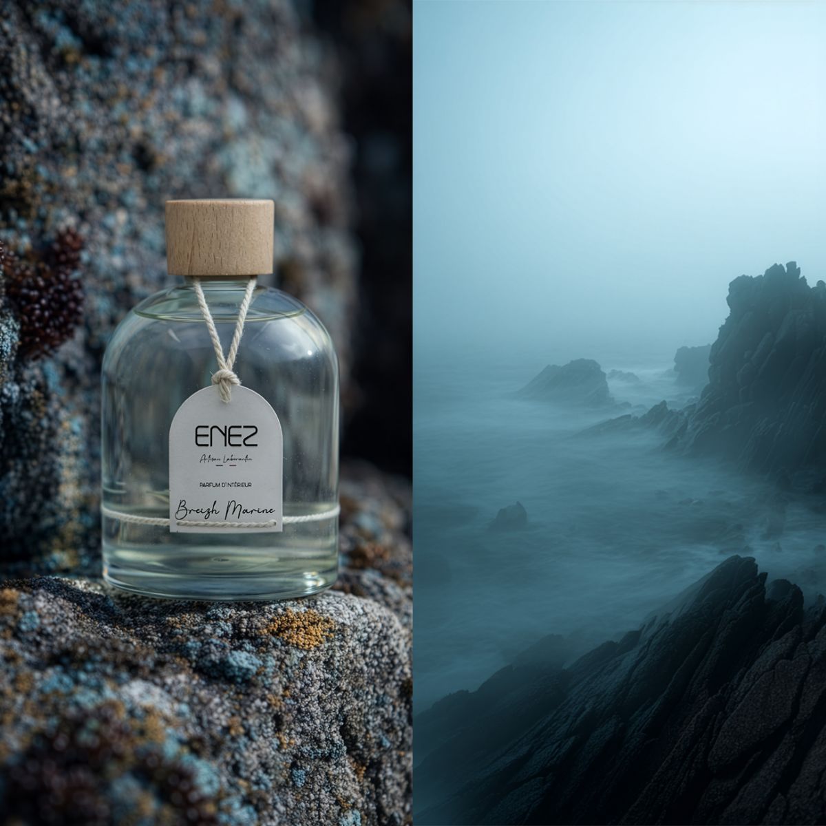 MARIN – FRAIS – BOISÉPar Cyrille CARLES Un parfum vibrant d’iode et d’air du large, comme une escale en terre bretonne. La fraîcheur marine ouvre la danse telle une brise vivifiante, portée par la profondeur boisée du vétiver. Peu à peu, un fond enveloppant de cèdre et d’ambre vient ancrer cette échappée, telle une promenade au bord de l’océan, entre vitalité et sérénité.