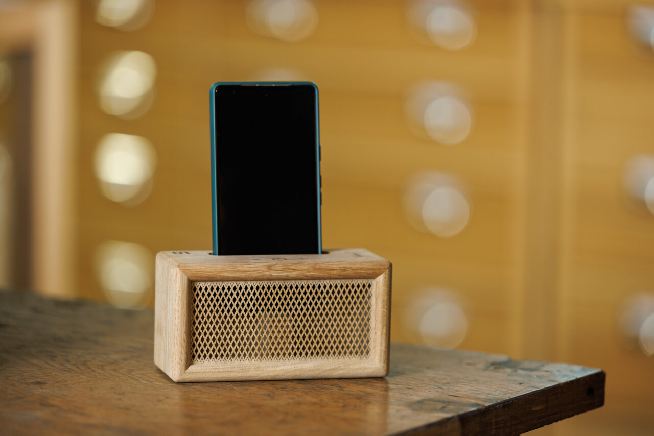 Écoutez vos musiques, podcasts, vidéos ou émissions préférées avec la Disco Box. Une enceinte en bois au design épuré, fabriquée artisanalement en chêne massif PEFC issu de forêts franc-comtoises gérées durablement.