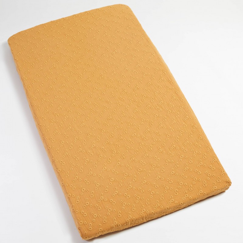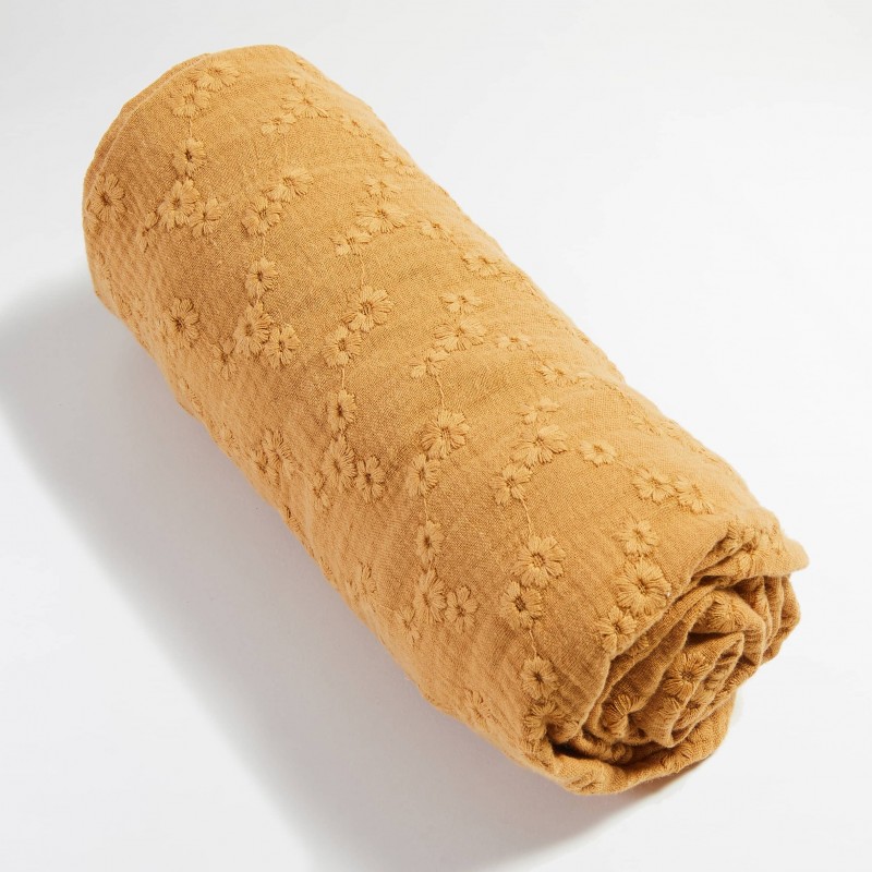Découvrez le drap housse Ambre et ses broderies douces et fleuries pour habiller la literie de votre bébé ! Ce drap housse est en double gaze de coton brodé et est donc particulièrement doux pour la peau de votre bébé. Équipé d'une bande élastique sur son contour, ce drap housse se fixe facilement sur le matelas du berceau de votre bébé.