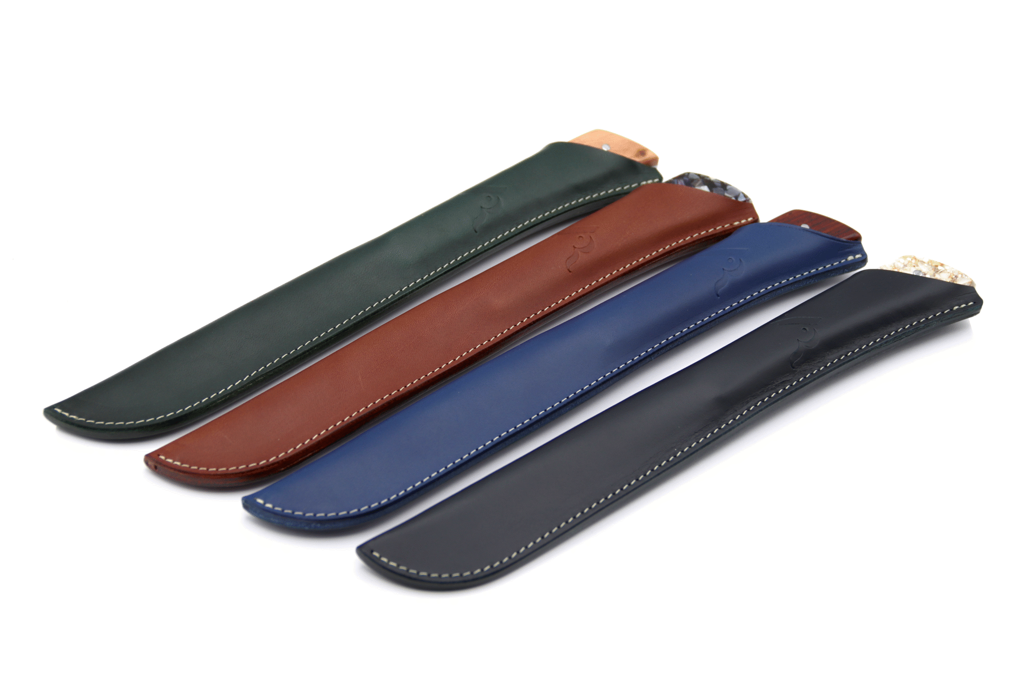 En collaboration avec Simples Objets, maroquinerie artisanale régionale tenue par Henry, nous avons décidé de designer sur mesure des étuis en cuir pour L'Oyat. Parfaitement adaptés à la forme de nos couteaux, ces étuis garantissent un maintien sécurisé et élégant. 4 coloris vous sont proposés, à vous de choisir !
