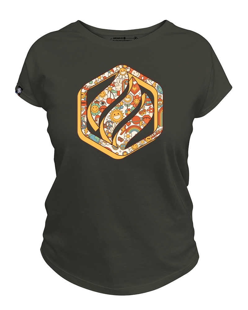 Tee-shirt femme manches courtes en coton biologique – modèle Flower Power Ce t-shirt femme met à l'honneur un motif coloré et ultra-positif inspiré des années 70, intégrant smileys, fleurs, arcs-en-ciel et petits soleils dans un logo Adrenagliss revisité. Le design, à la fois rétro et plein de vie, apporte une touche joyeuse et unique à vos tenues. Disponible en blanc, noir, gris chiné et bleu marine. Nous avons choisi un coton bio épais et durable (220 g/m²), certifié GOTS, pour une tenue parfaite lavage après lavage. Ce tissu allie confort, robustesse et respect de l’environnement. Elodie, notre couturière, a dessiné une coupe féminine et confortable : légèrement cintrée, avec des manches originales, pensées pour vous mettre en valeur au quotidien. Le coton est cultivé en Grèce et tricoté en France, dans la Somme. Nous maîtrisons toute la chaîne de fabrication, du fil au vêtement fini. Chaque t-shirt est confectionné à la commande dans notre propre atelier à Toulouse. Zéro surstock, 100% personnalisé. Un t-shirt local, éthique et design.