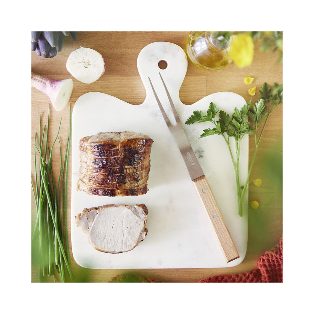 La fourchette n°124 de la collection PARALLELE est fabriquée par Opinel. En acier inoxydable, la fourchette vous permet de maintenir et de découper parfaitement les rôtis et gigots. La fourchette est réalisée en acier X50CrMoV15, qui est un acier inoxydable qui présente une très haute résistance à la corrosion.