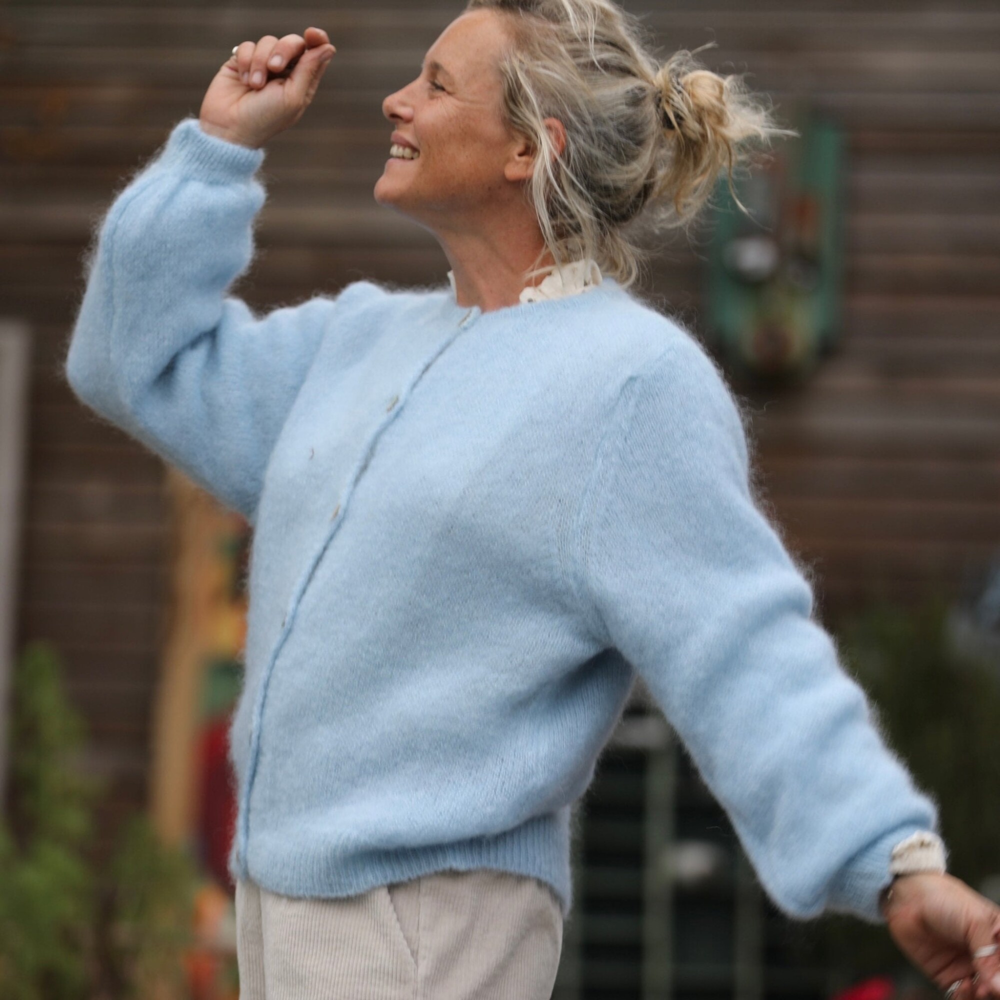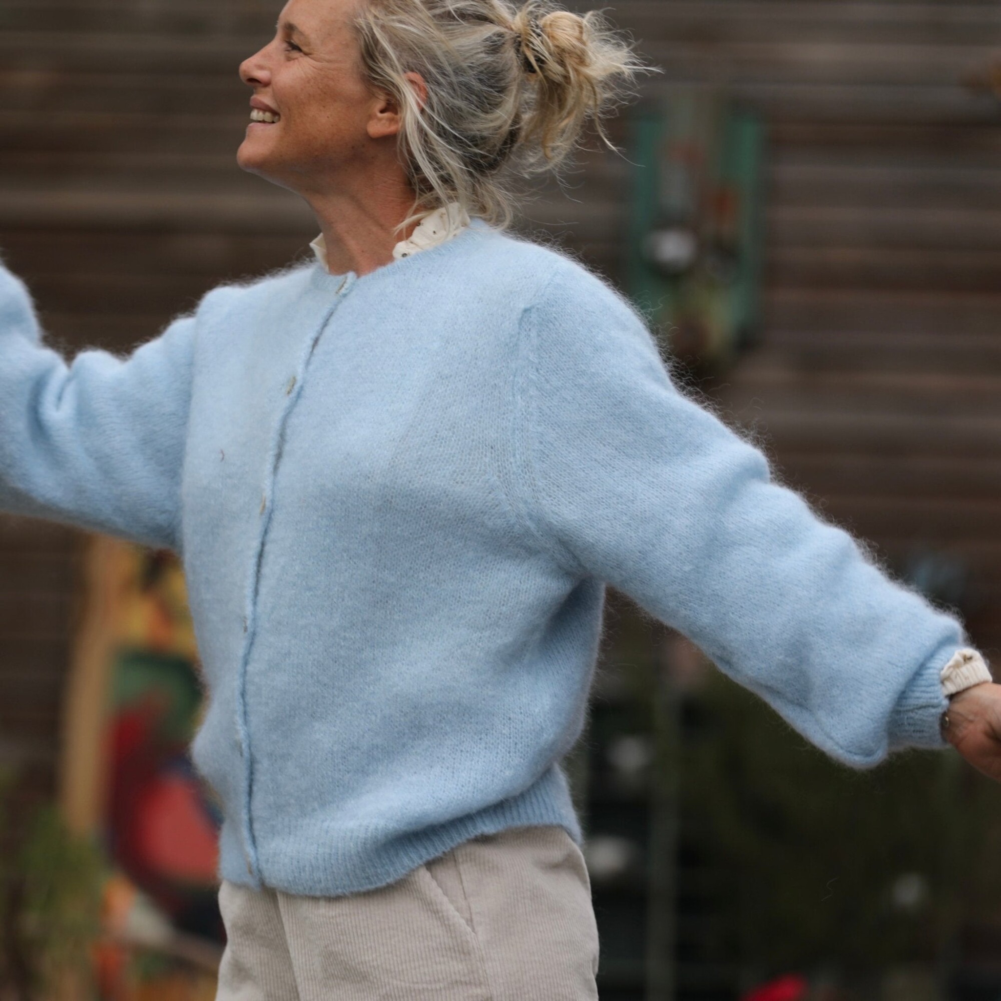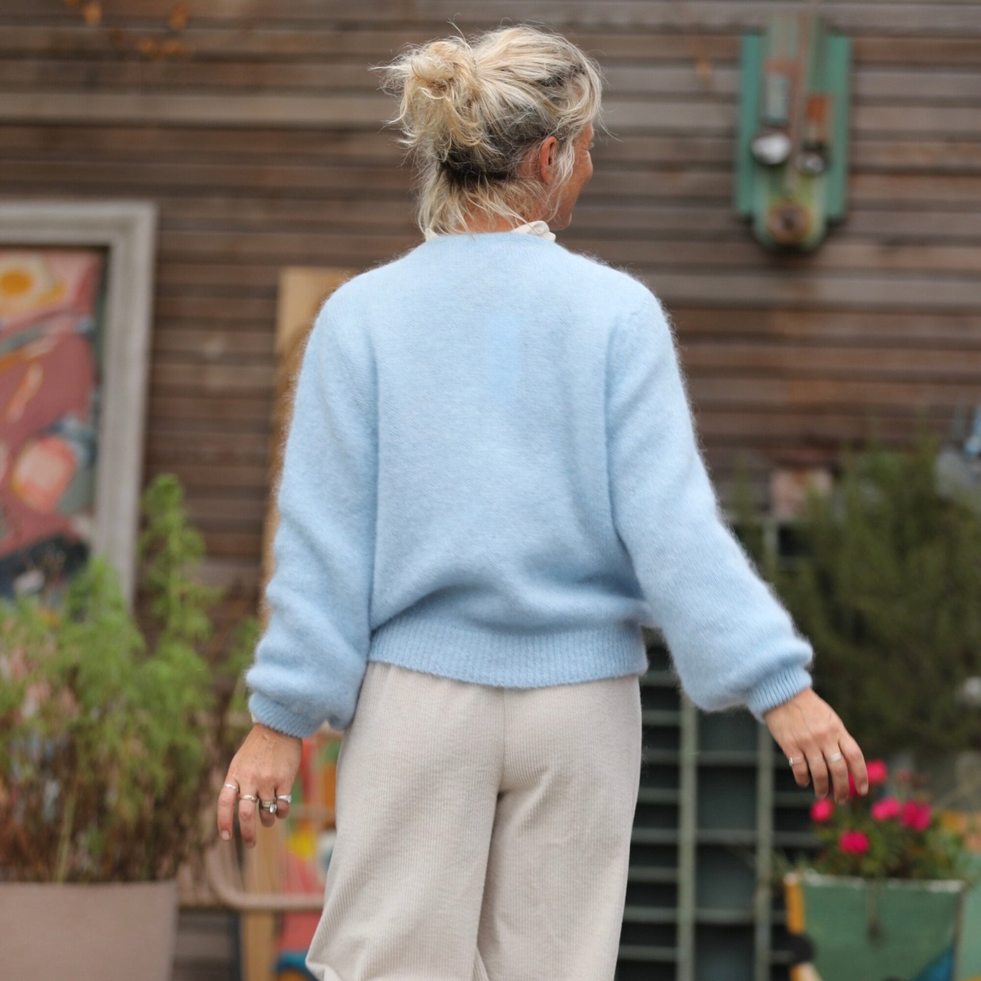 Sélène – Gilet en mohair au charme intemporel. Sa coupe légèrement ample et son col rond lui donnent une allure féminine et décontractée.