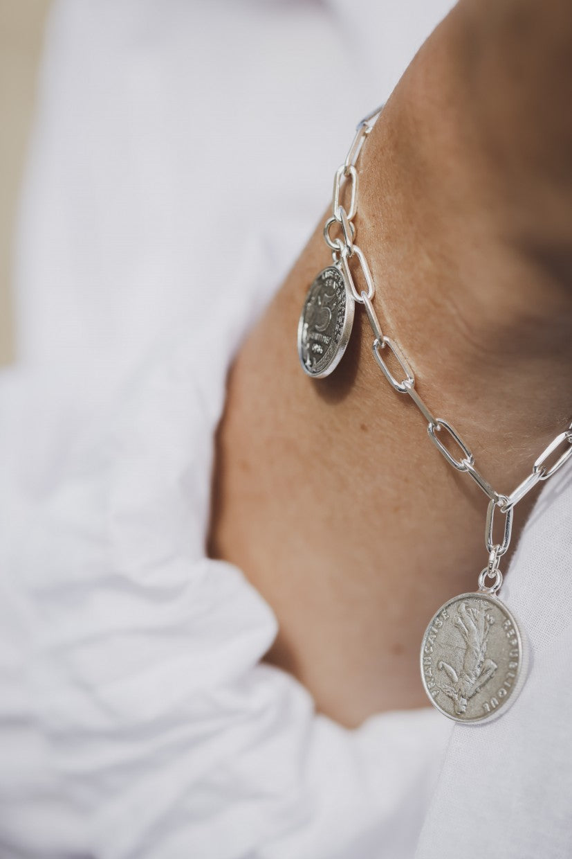 Le Sou Français est une marque de bijoux unique, alliant l’élégance intemporelle et l’histoire de la monnaie française. Chaque pièce de la collection est soigneusement fabriquée à partir d’anciennes pièces de monnaie.