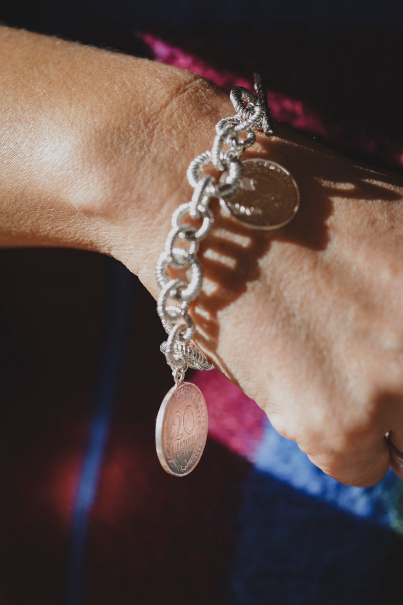 Le Sou Français est une marque de bijoux unique, alliant l’élégance intemporelle et l’histoire de la monnaie française. Chaque pièce de la collection est soigneusement fabriquée à partir d’anciennes pièces de monnaie.