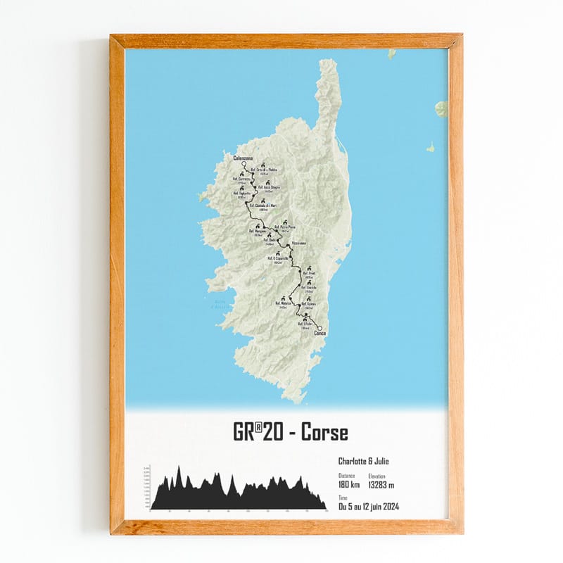 Cette affiche du parcours du GR20 est imprimée sur du papier 100% recyclé.Pour créer un poster personnel et unique, ajoutez votre nom, votre numéro de dossard et votre temps d’arrivée.