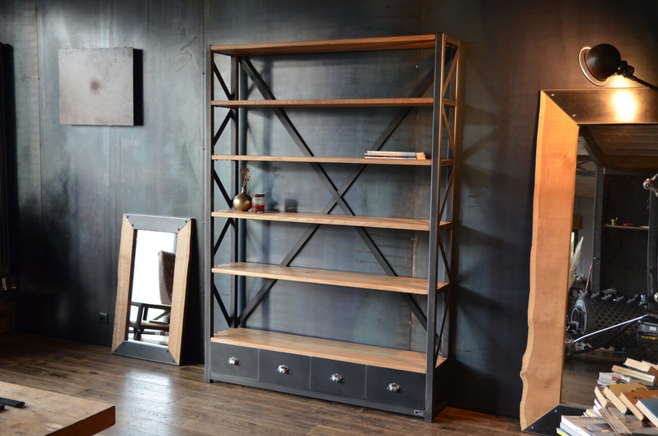Grande étagère bibliothèque industrielle GILBERTO XL