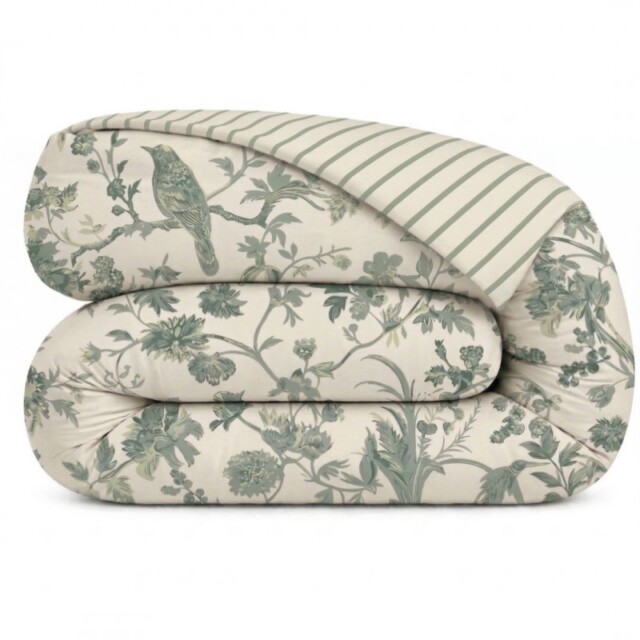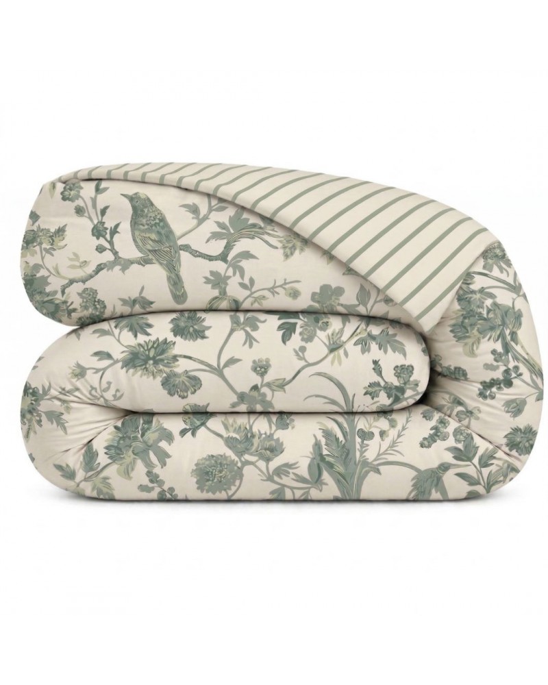 Jardin Secret est née dans notre atelier, imaginée comme une promenade, où la nature foisonne entre feuillages délicats, fleurs sauvages et oiseaux discrets sur un fond naturel lumineux. Cette parure en percale de coton est entièrement fabriquée en France, transformant la chambre en un véritable refuge de douceur, apaisant et élégant.