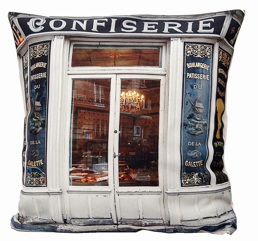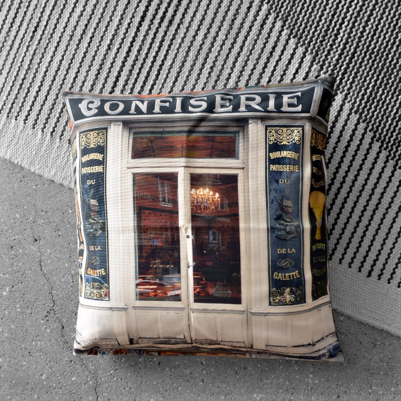 Cette housse de coussin Paris est imprimée recto verso de photos de cette véritable Confiserie Boulangerie de Montmartre ! Apportez une touche parisienne à votre déco.