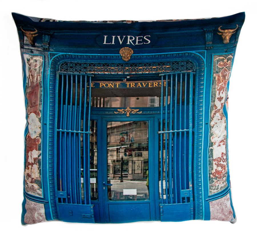 Cette housse de coussin Paris est imprimée de photos de cette ancienne librairie Livres Le pont traversé ! Plongez la tête dans ce coussin vintage, vous voyagez dans les récits ...